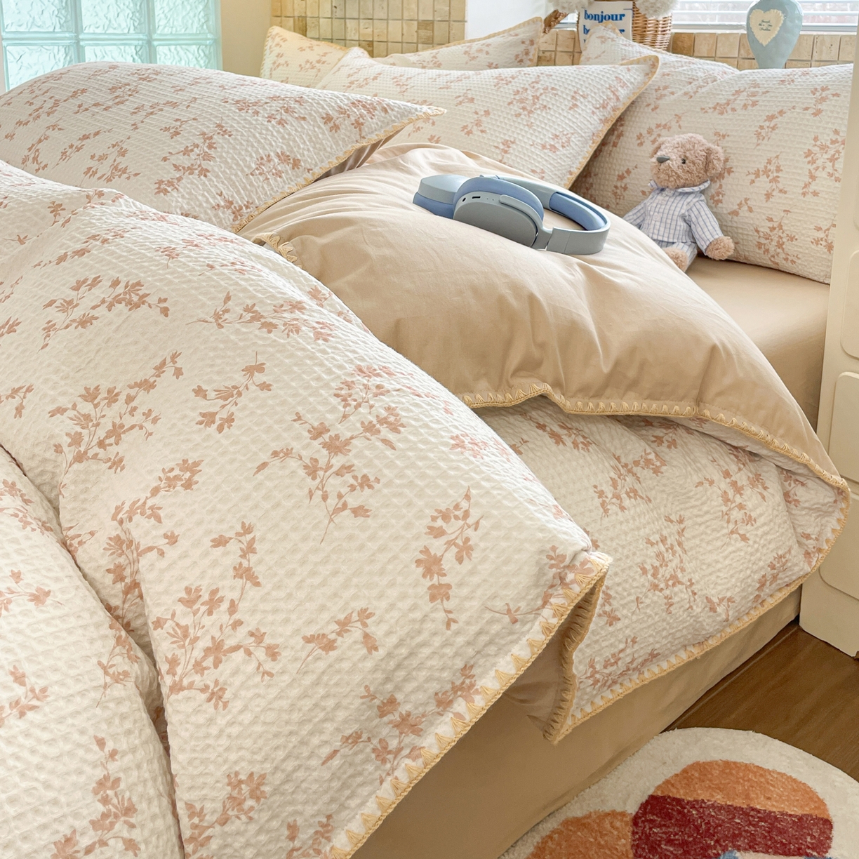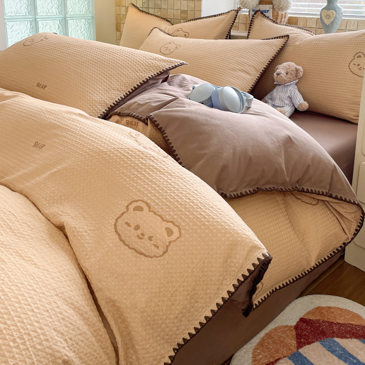 2026新款A类全棉纯棉水洗华夫格贝壳绣四件套