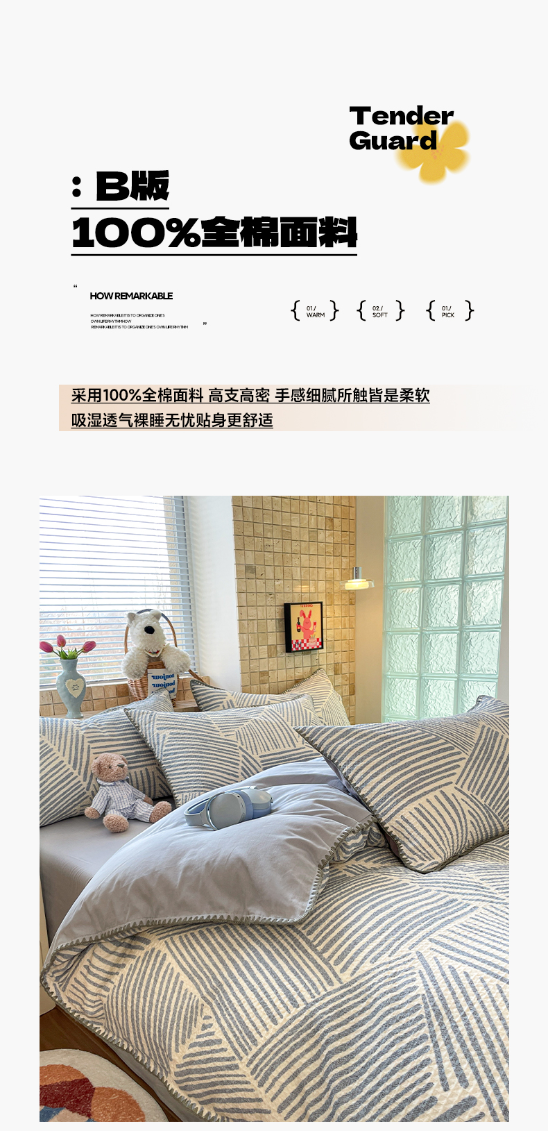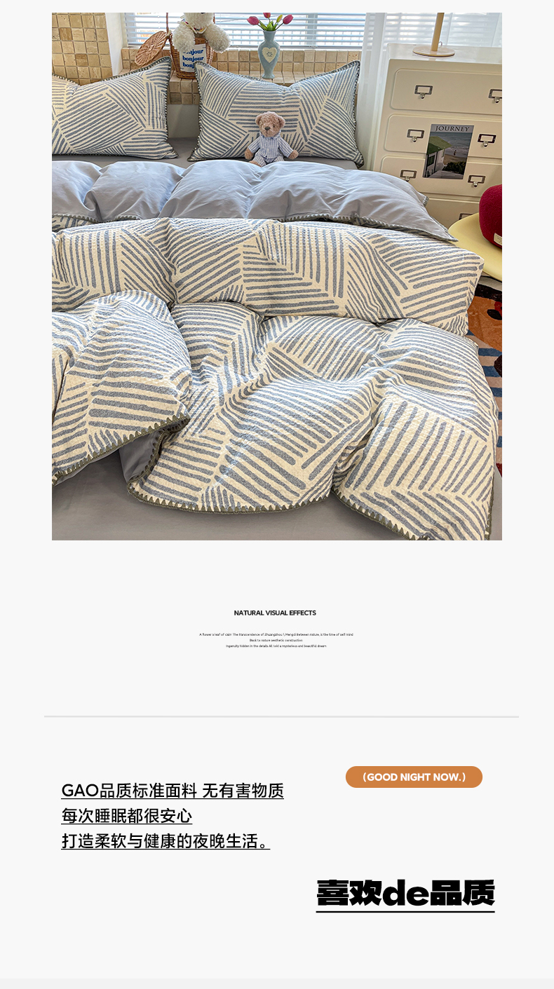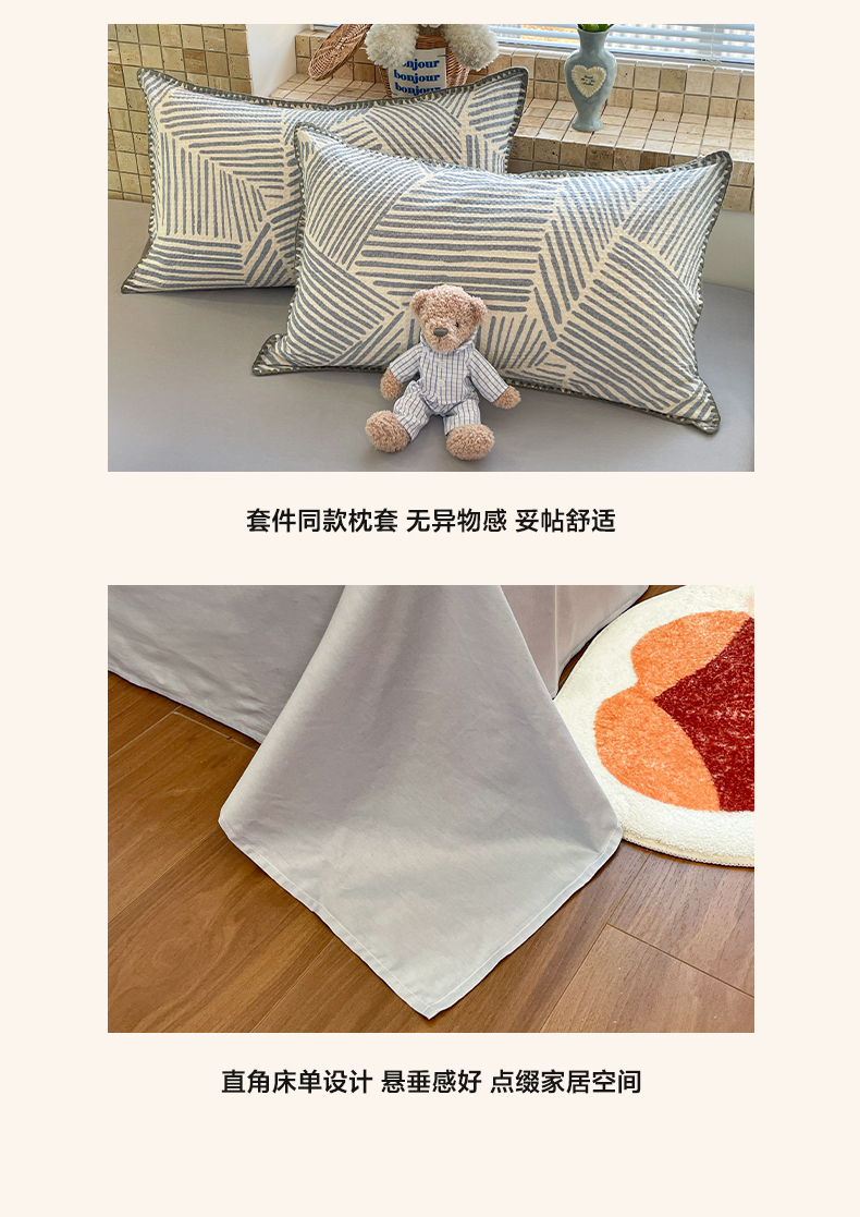 A类全棉良品风学生宿舍床三件套