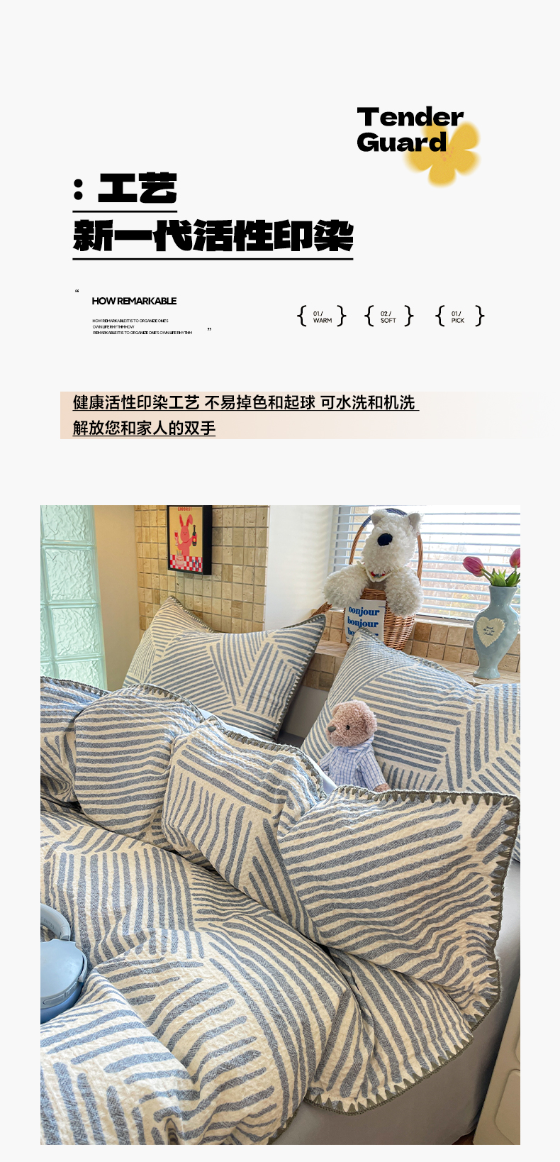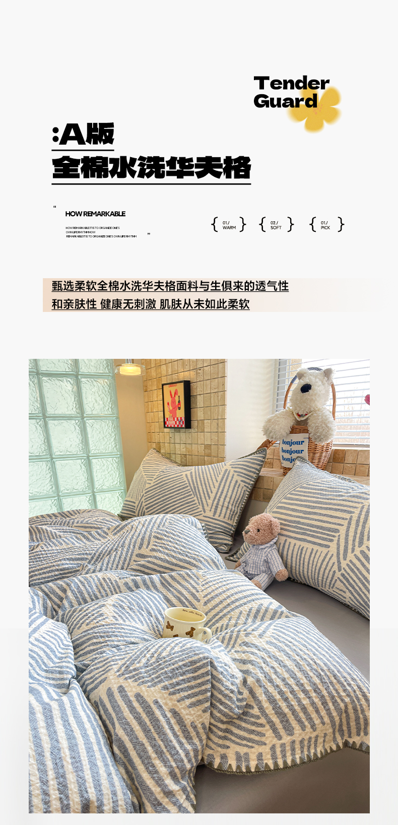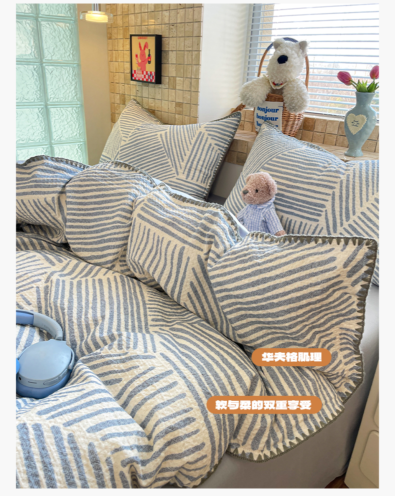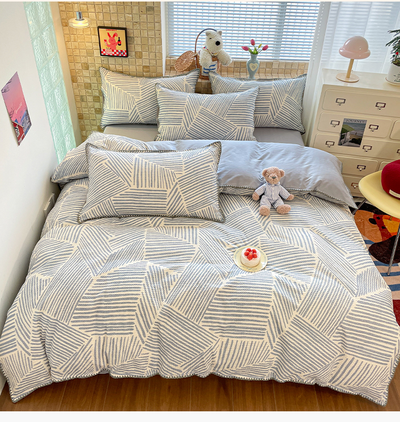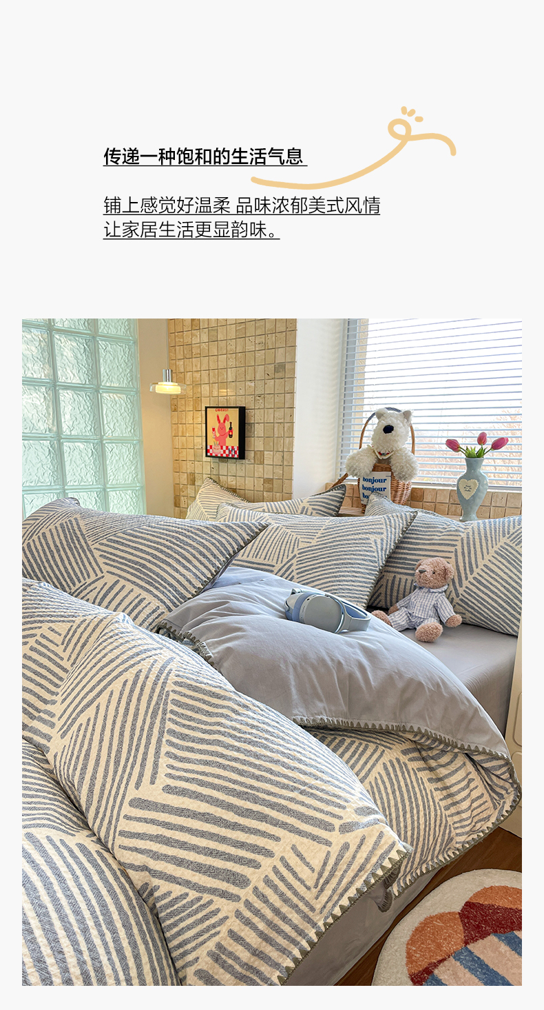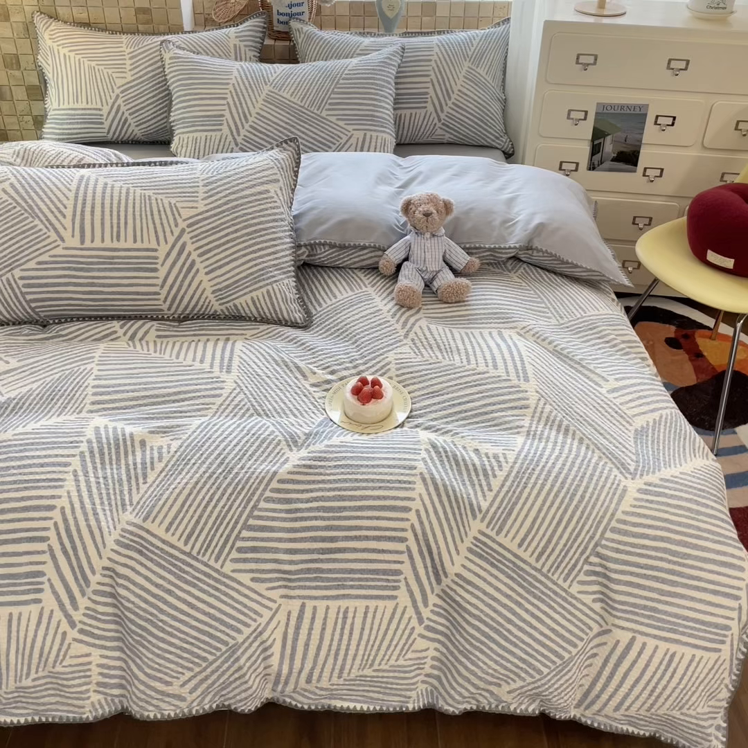 2026新款全棉A类三层纱水洗棉色织提花四件套系列