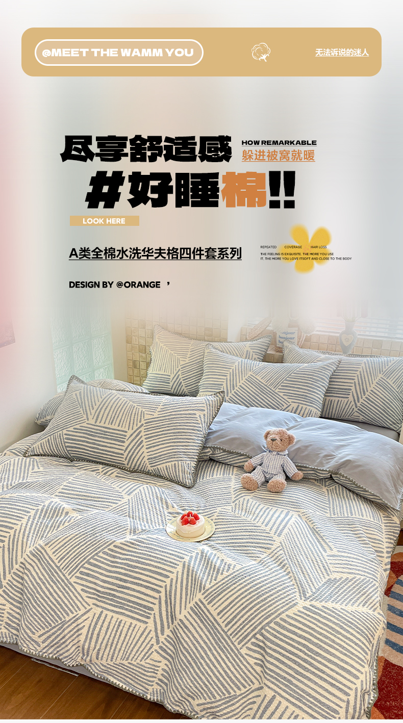 2025新款A类100%全棉磨毛休闲中古系列四件套