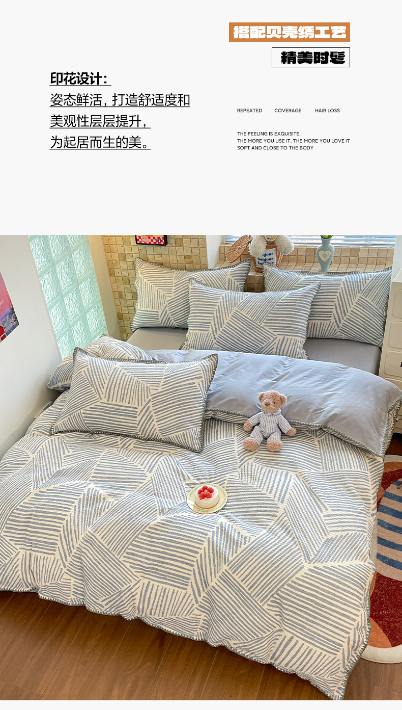 全棉A类色织水洗棉贝壳绣学生宿舍床系列