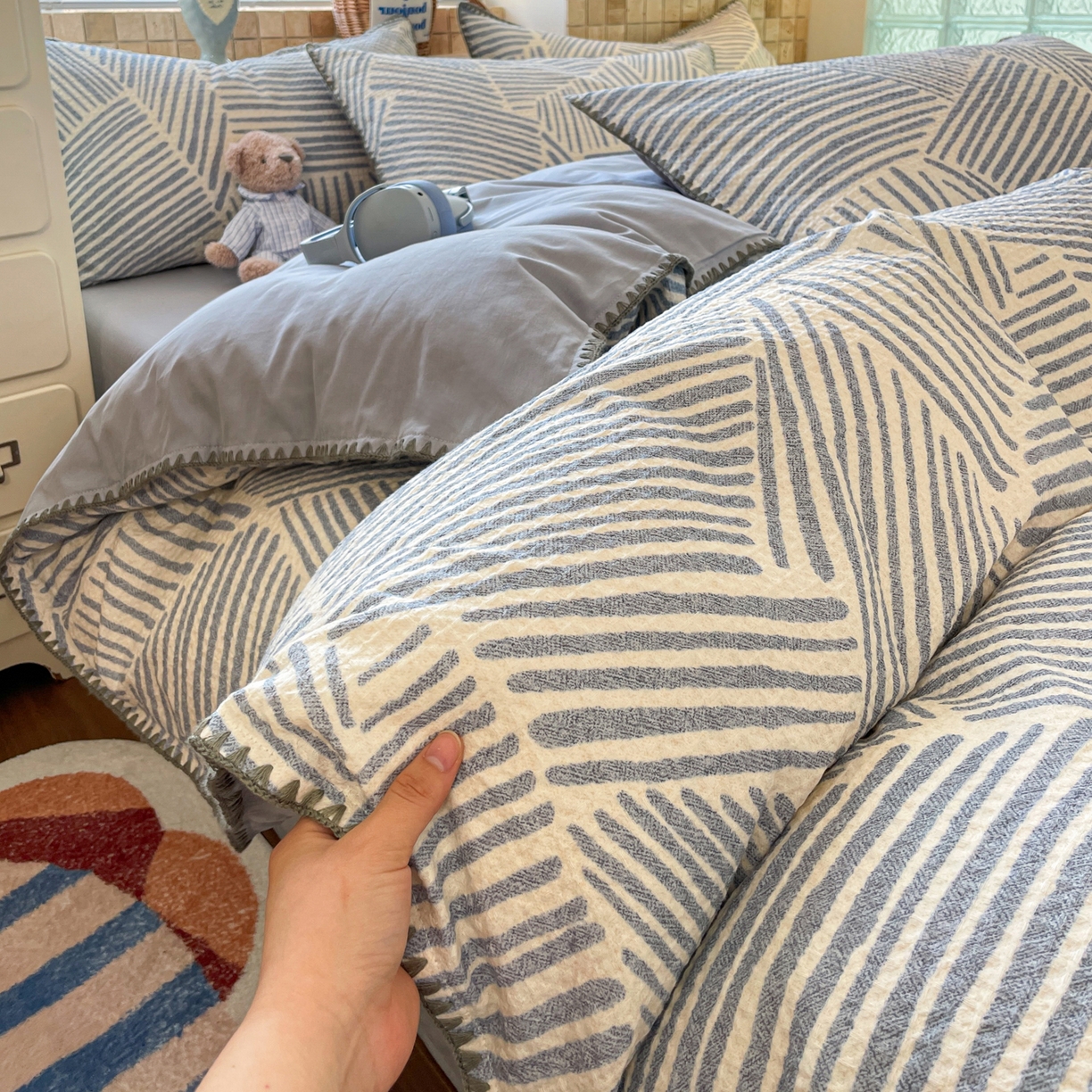 2025新款A类水洗棉撞色大豆被系列被子被芯