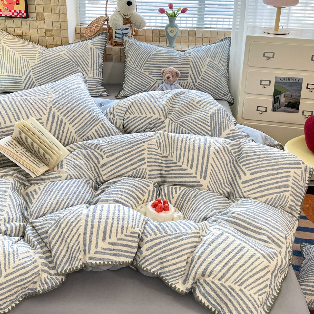 2025新款A类全棉色织水洗棉大豆夏被四件套系列