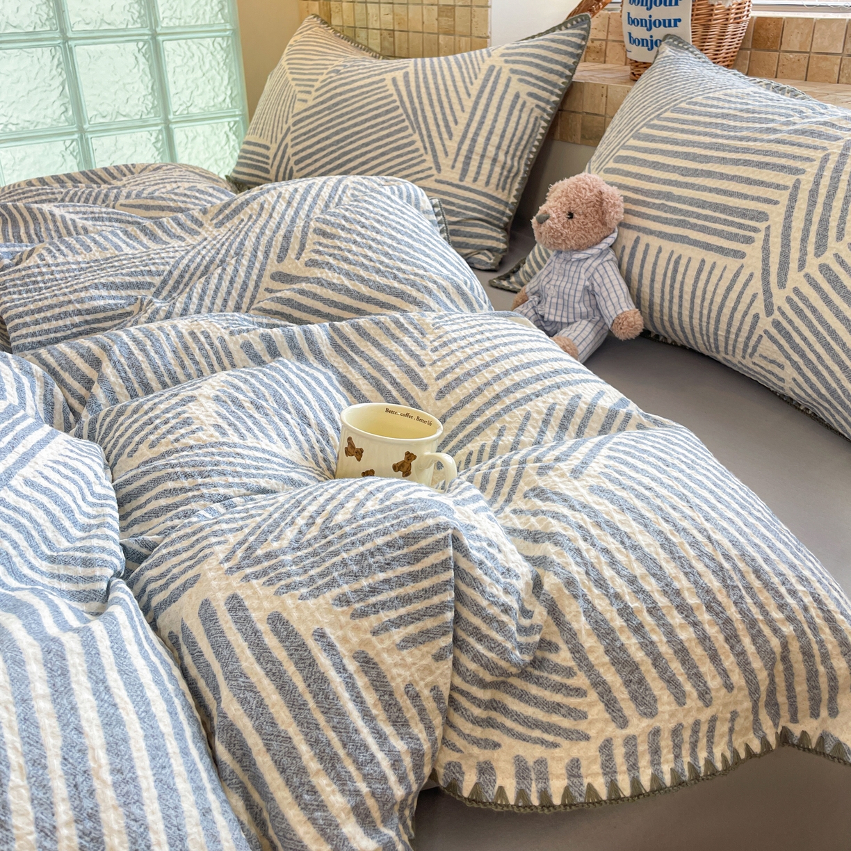 2025春夏款A类糯糯棉麻绳烫画款大豆被