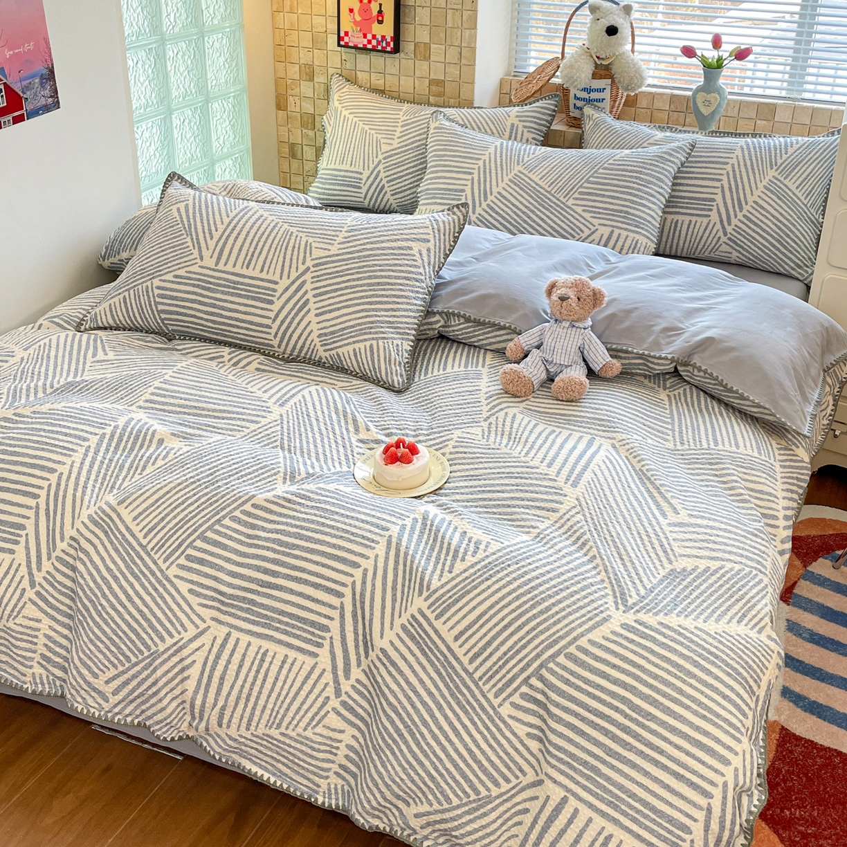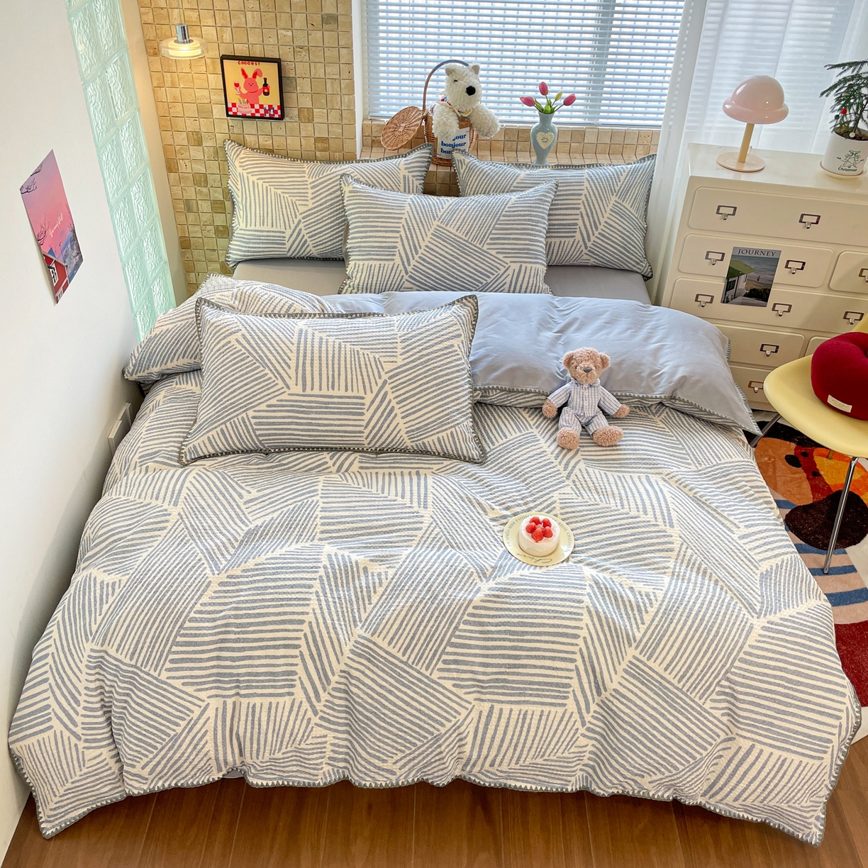 2025新款A类100%全棉磨毛条格卡通系列四件套