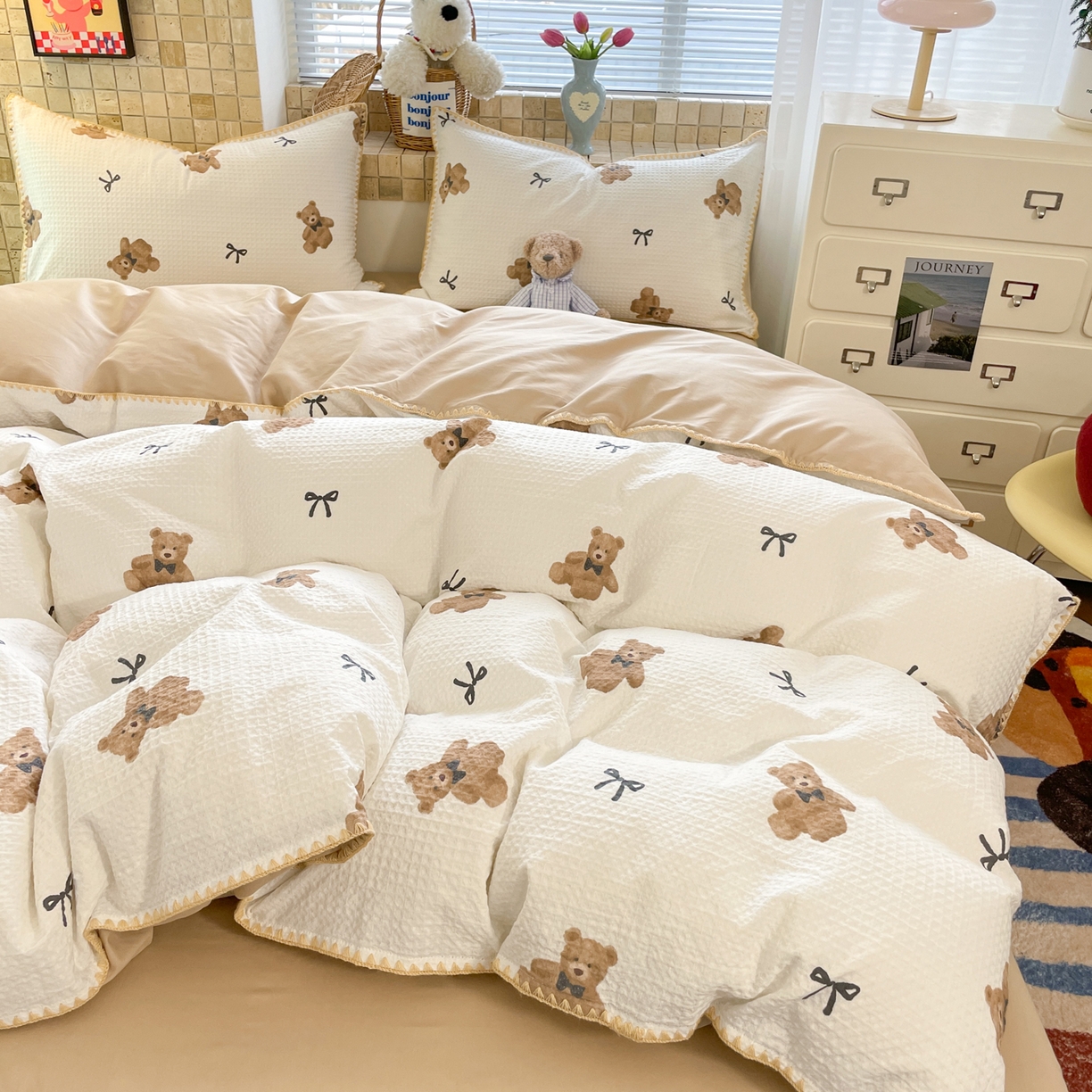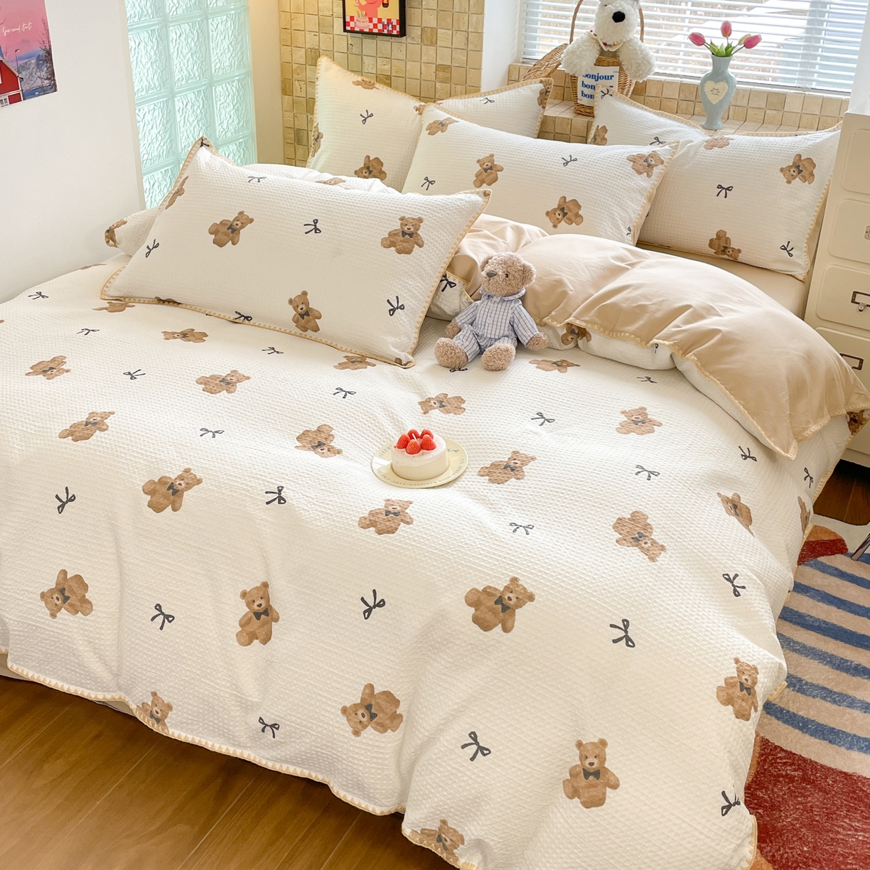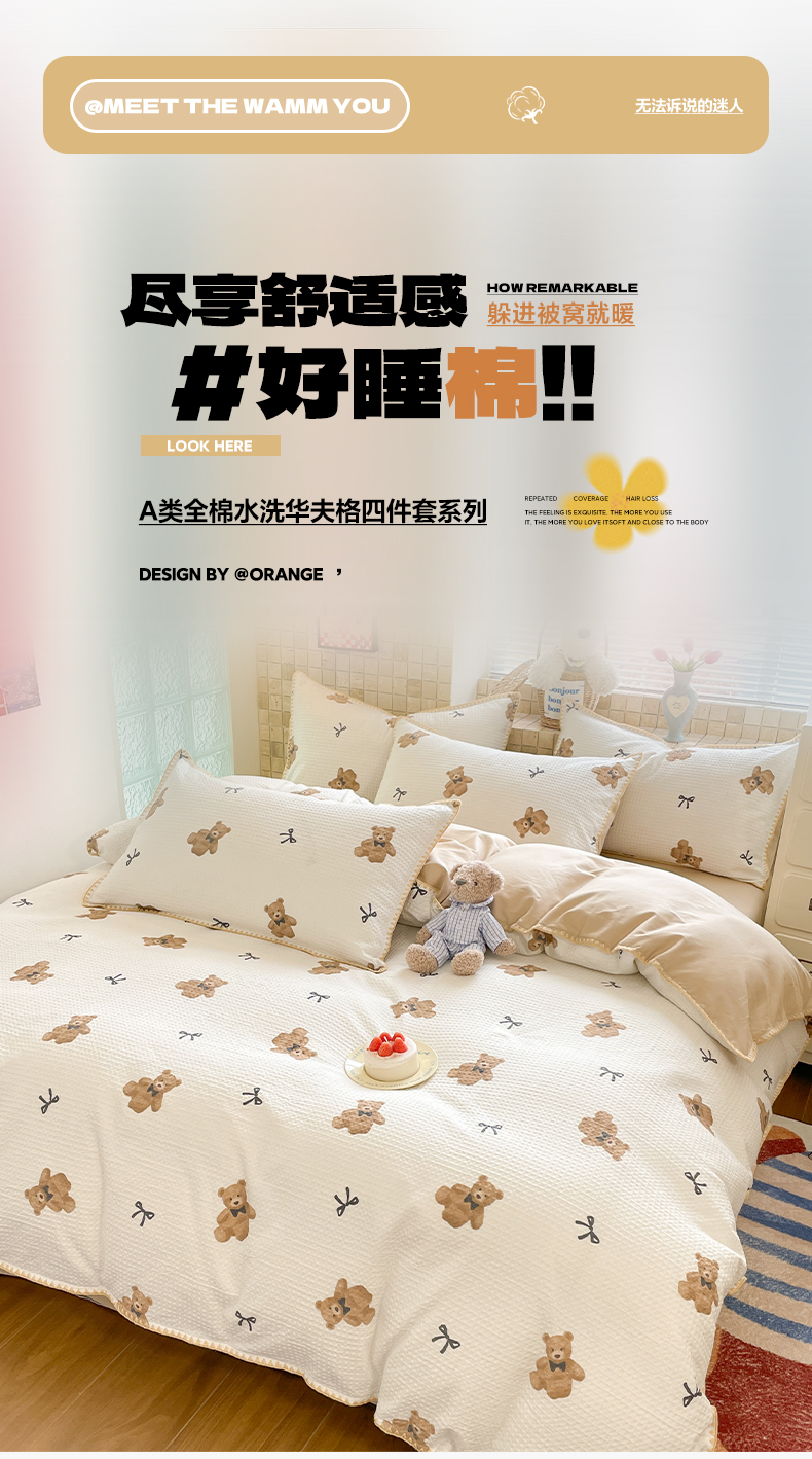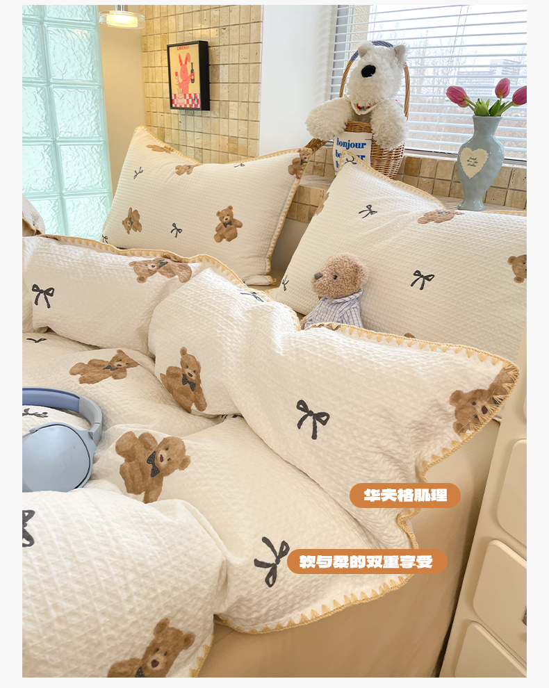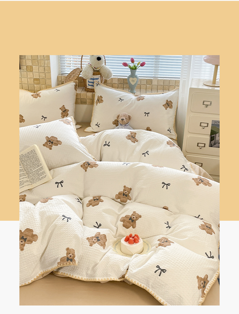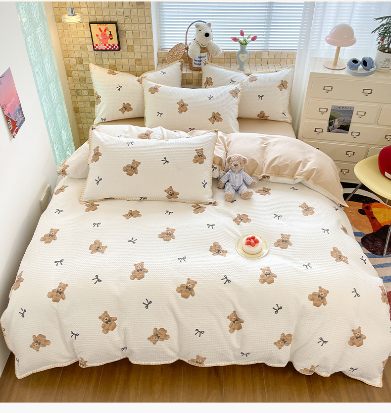 25新款A类凉感丝熊豆豆夏被四件套
