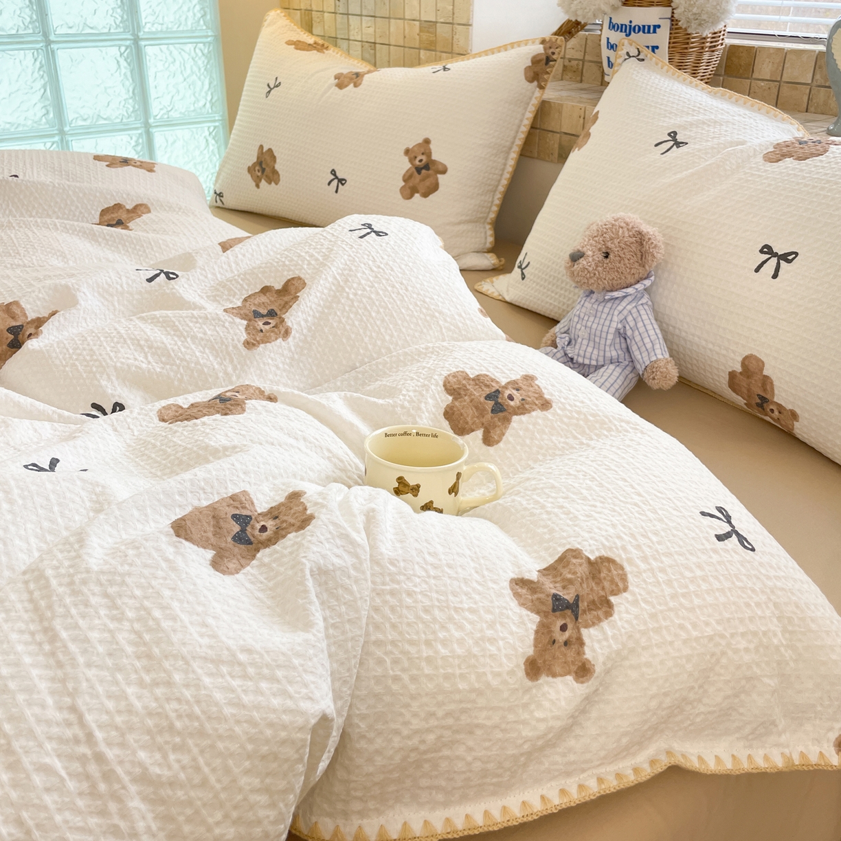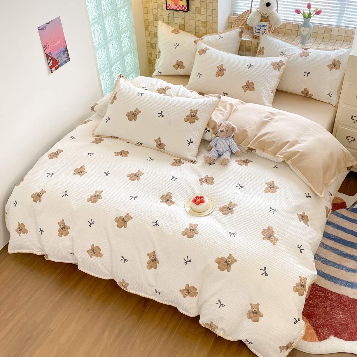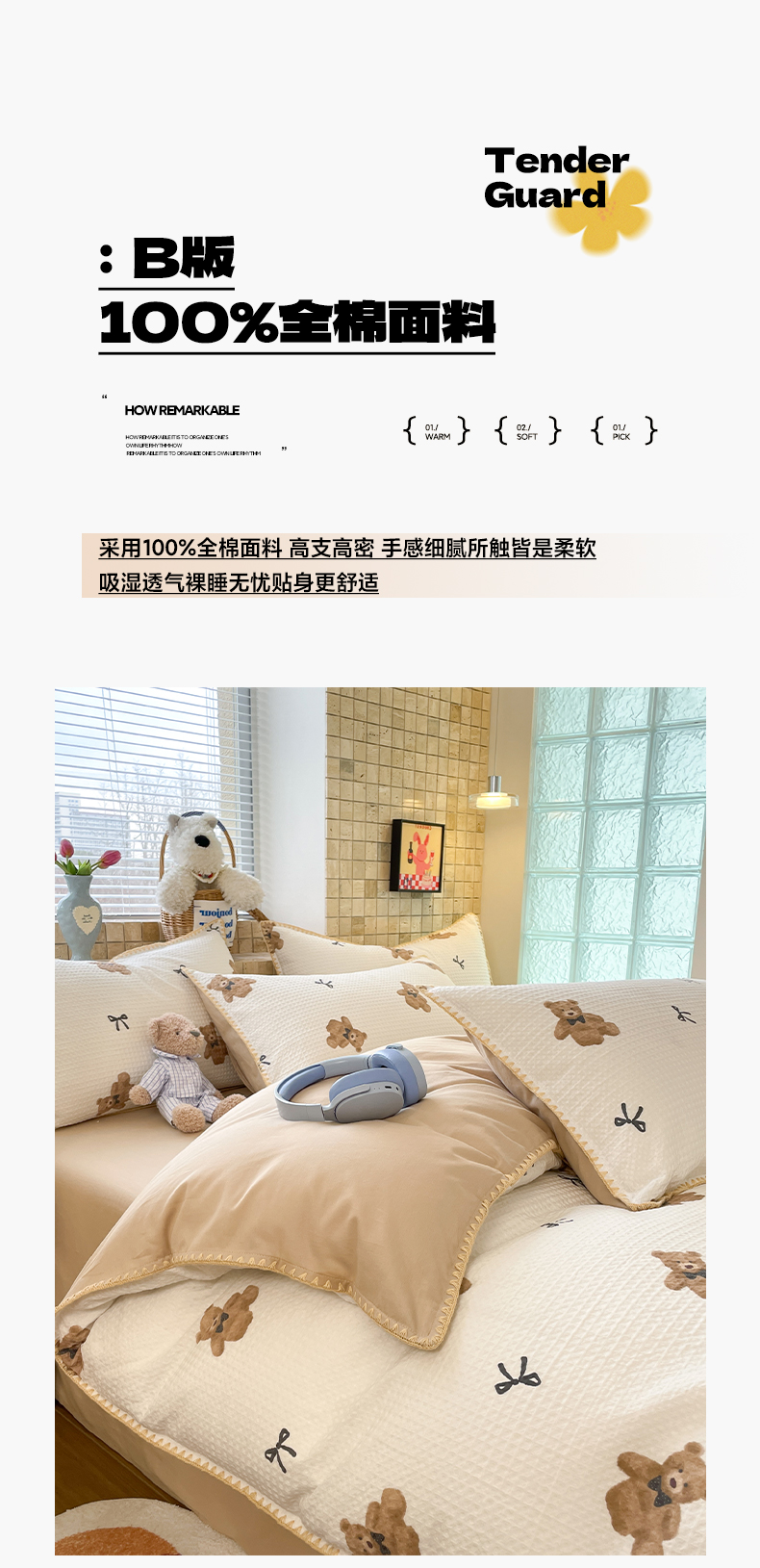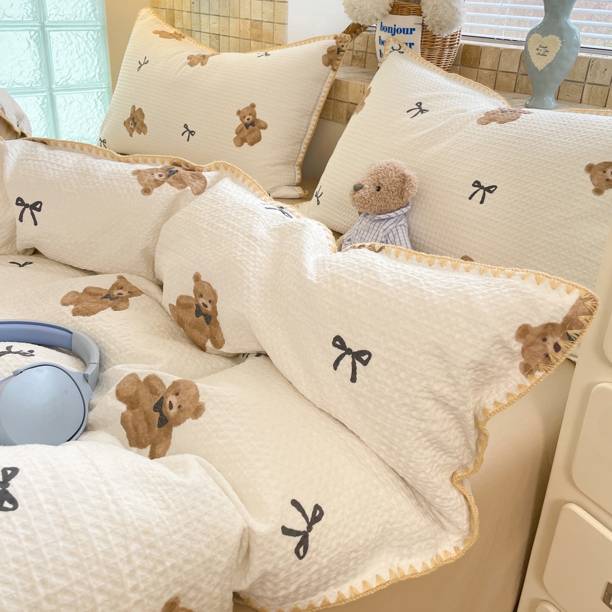 25新款A类凉感丝熊豆豆夏被四件套