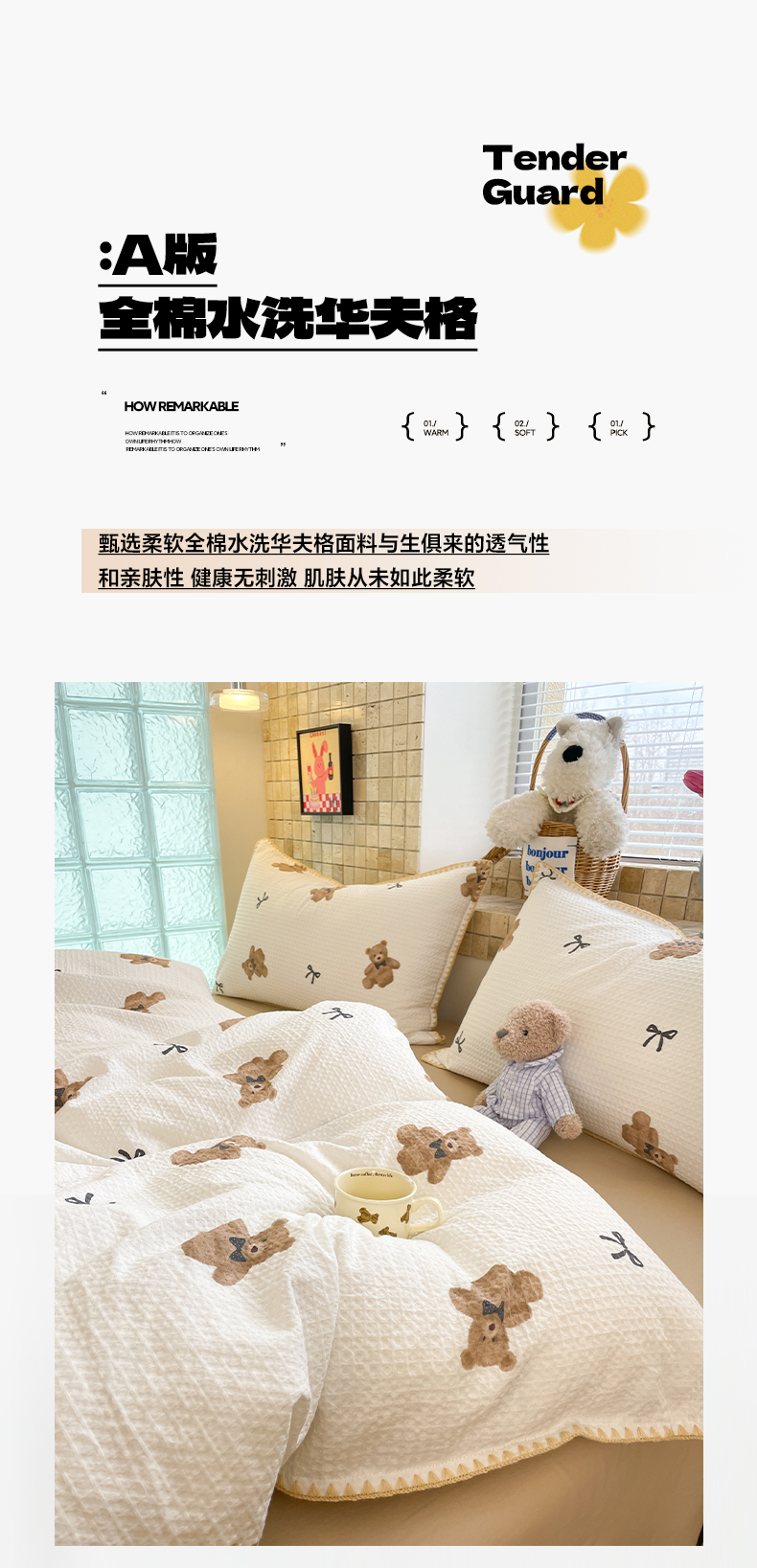 2026新款全棉A类三层纱水洗棉色织提花四件套系列