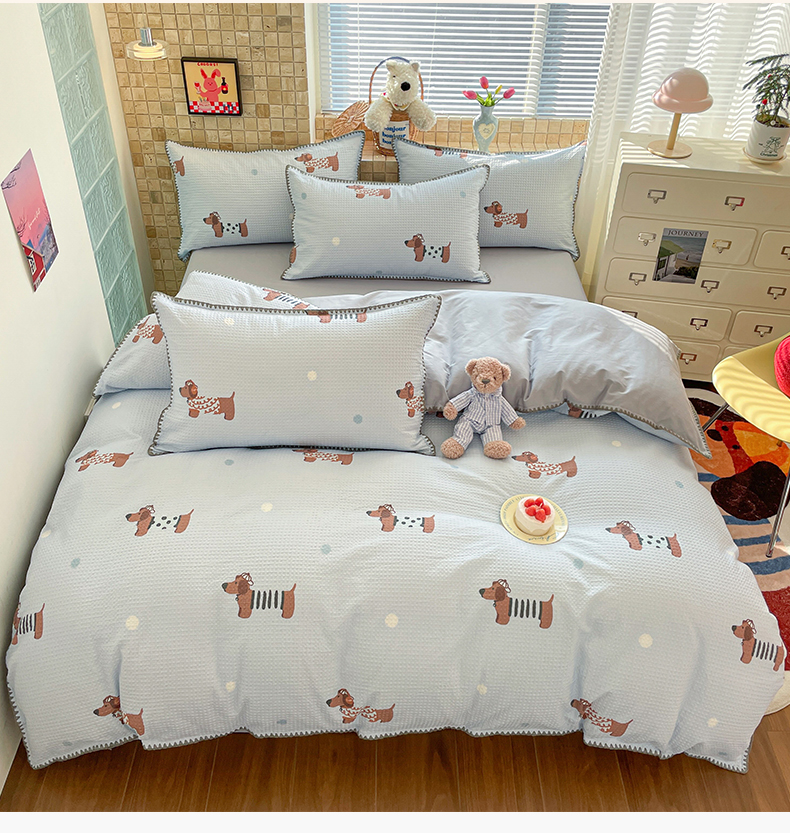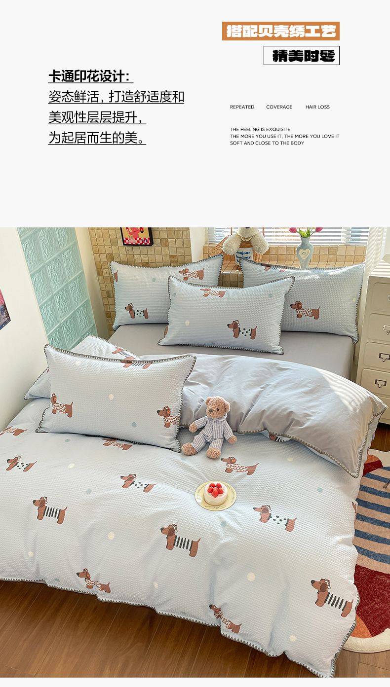 全棉A类色织水洗棉贝壳绣学生宿舍床系列