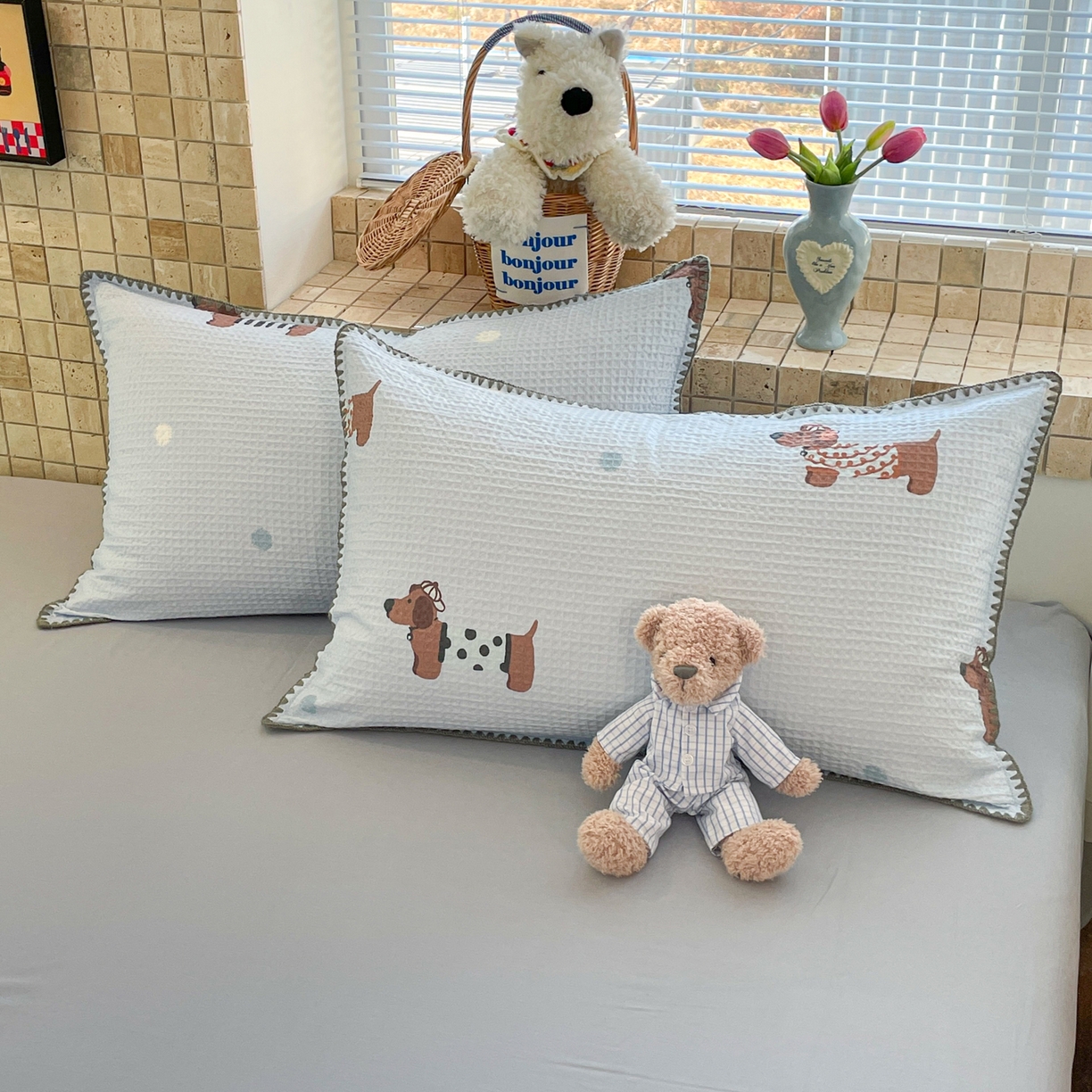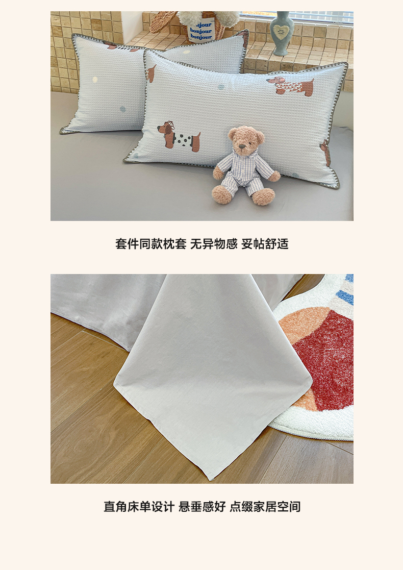 2025新款A类原棉磨毛毛巾绣夹棉床笠-萌宠系列