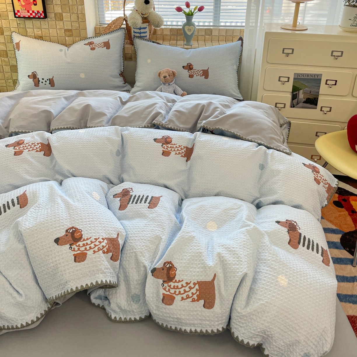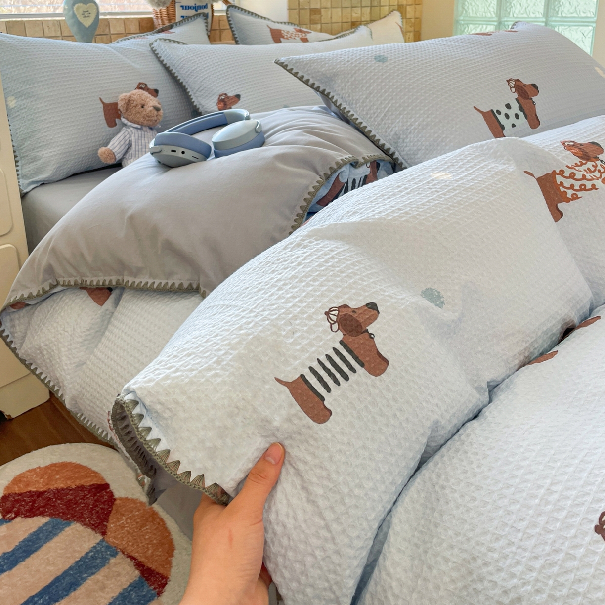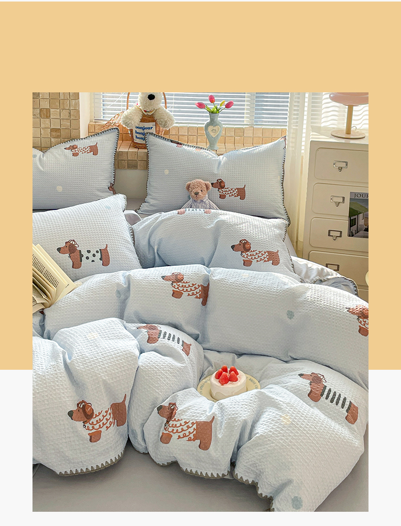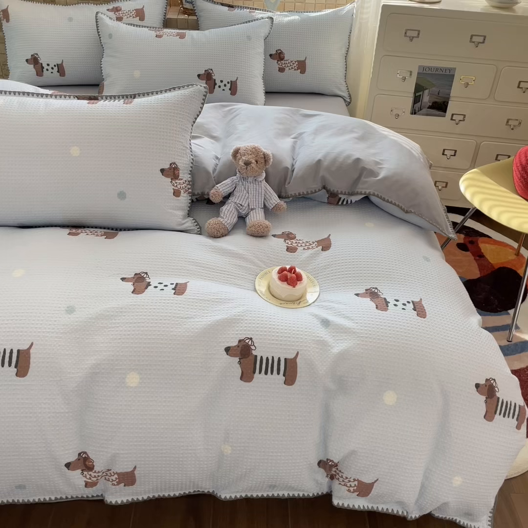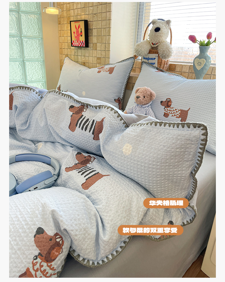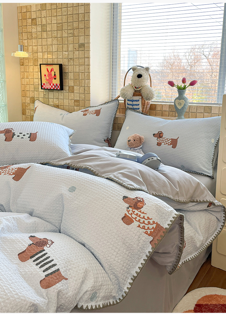 2025新款A类全棉双层纱印加绣呆萌系列四件套