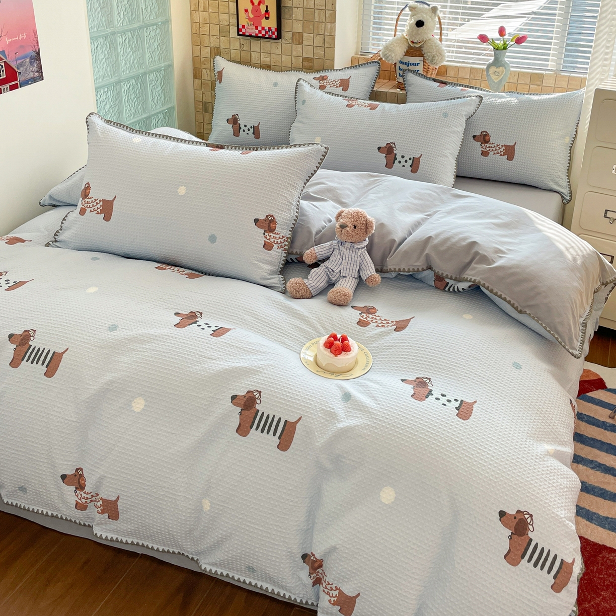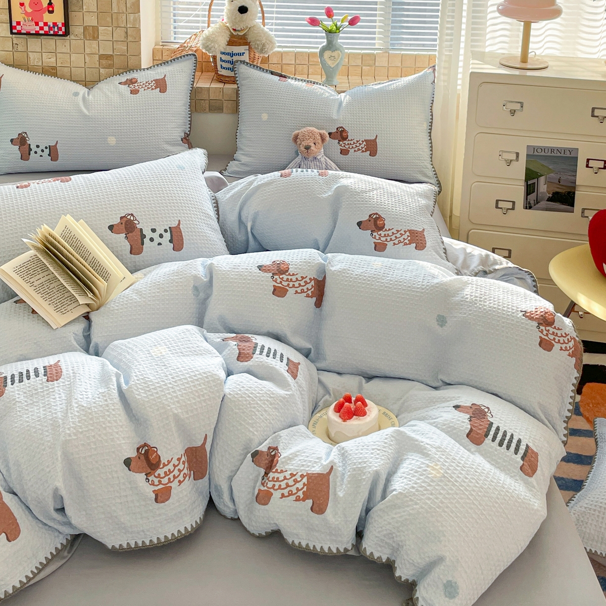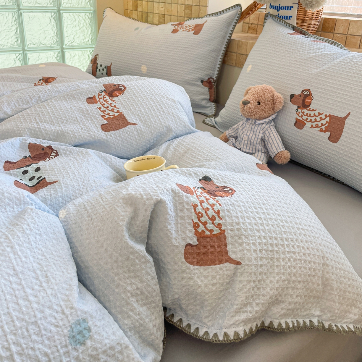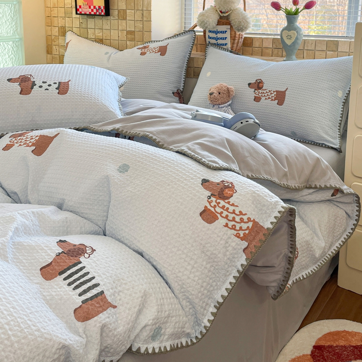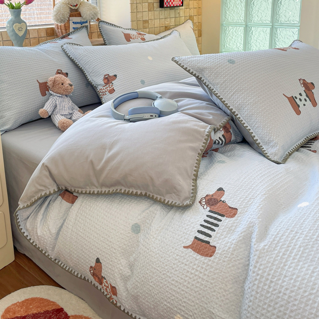2025新款A类全棉双层纱印加绣呆萌系列四件套