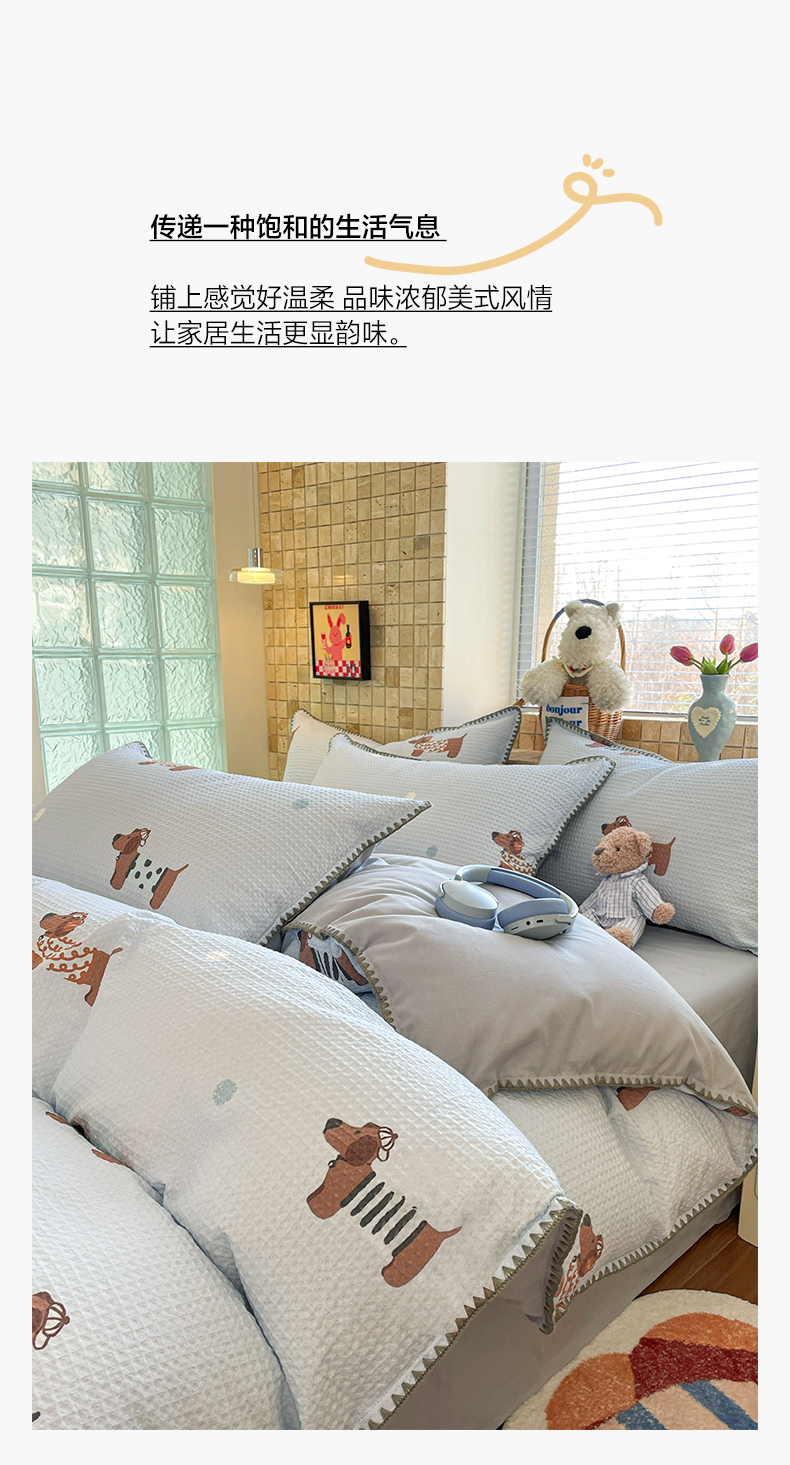 2025新款A类高克重牛奶绒泡泡绒印花美拉德风系列四件套