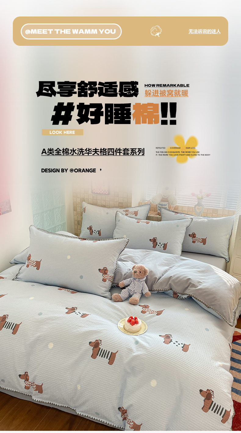 2025新款A类100%全棉磨毛条格卡通系列四件套