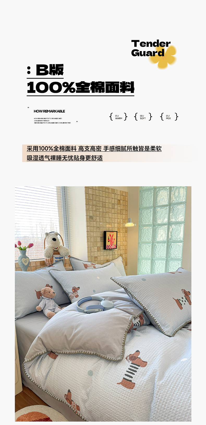 A类全棉良品风学生宿舍床三件套
