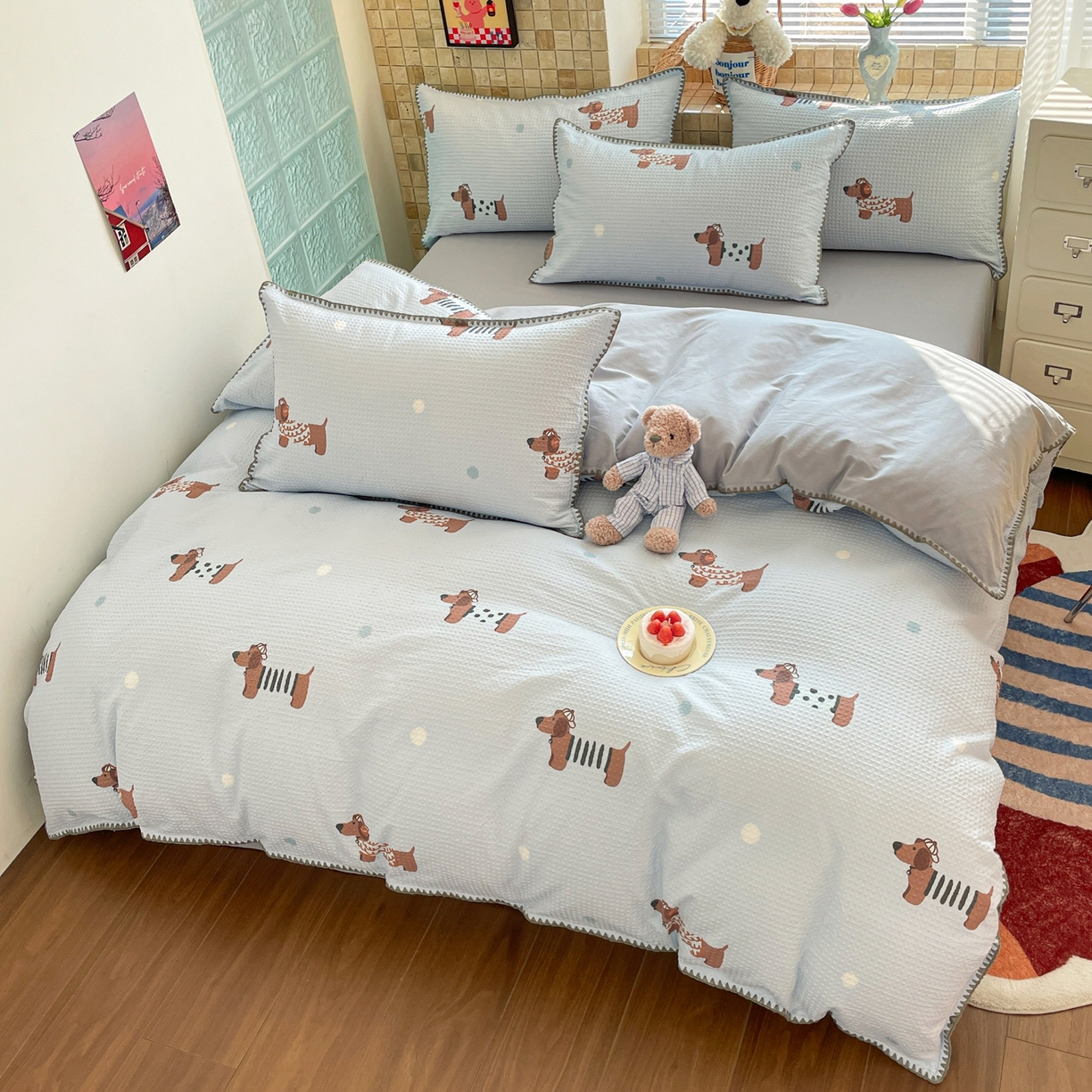 A类全棉良品风学生宿舍床三件套六件套