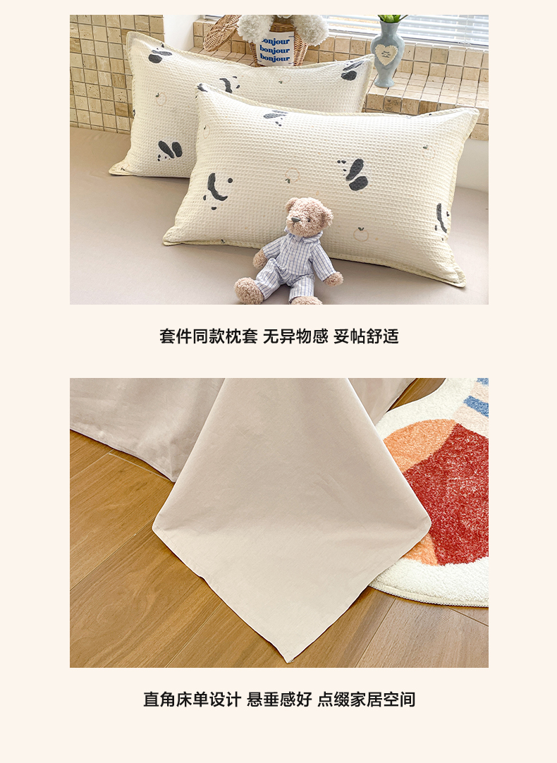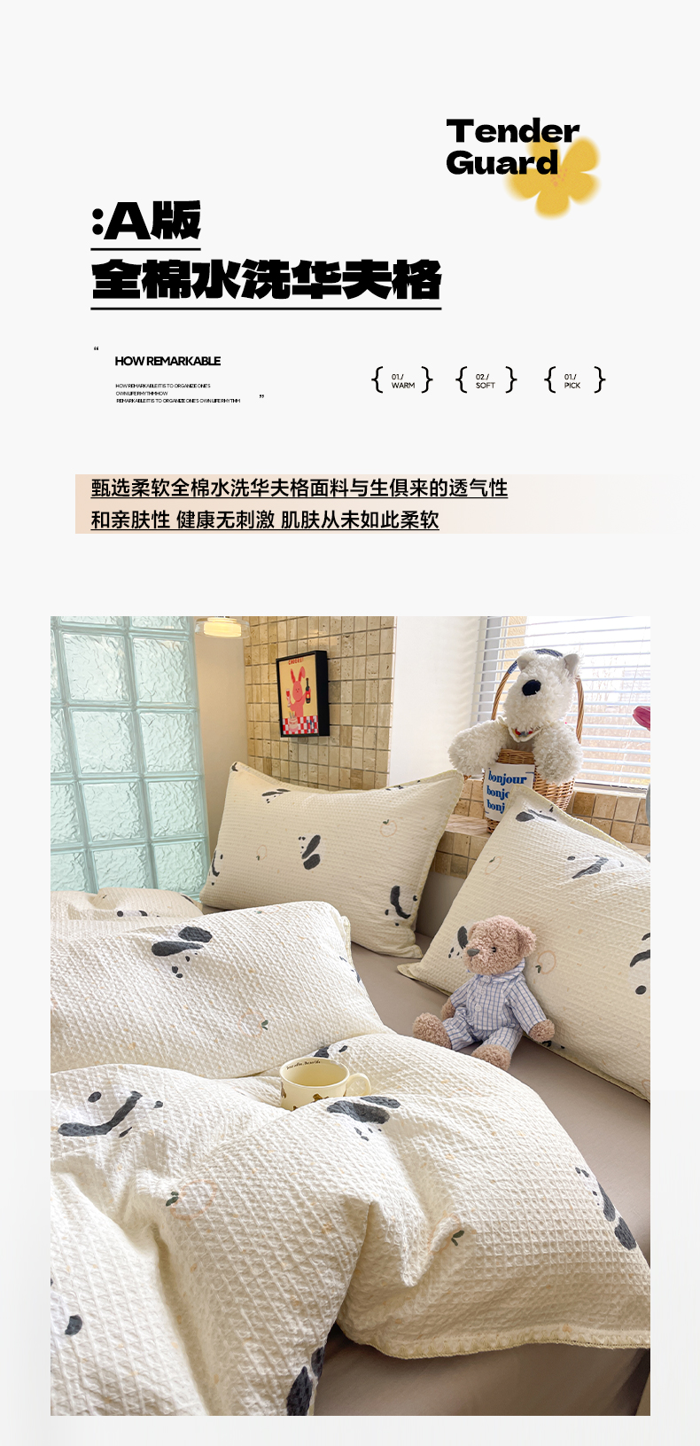 2026新款A类全棉纯棉水洗华夫格贝壳绣四件套