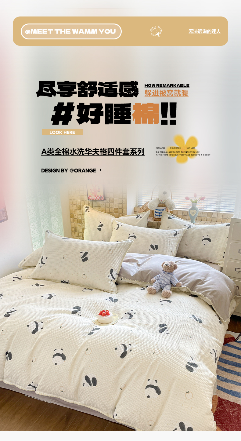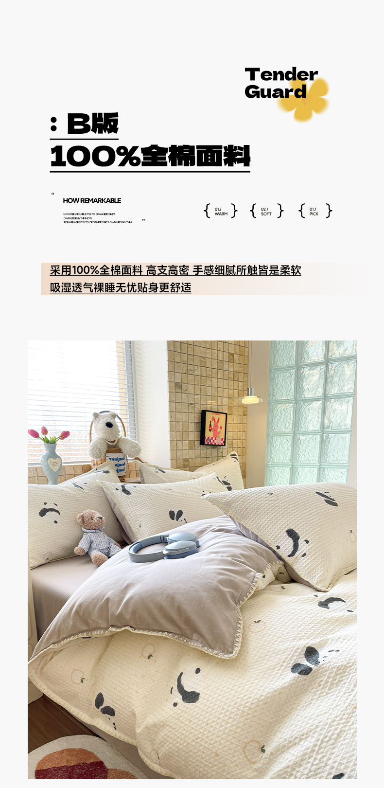 2025新款A类100%全棉磨毛条格卡通系列四件套
