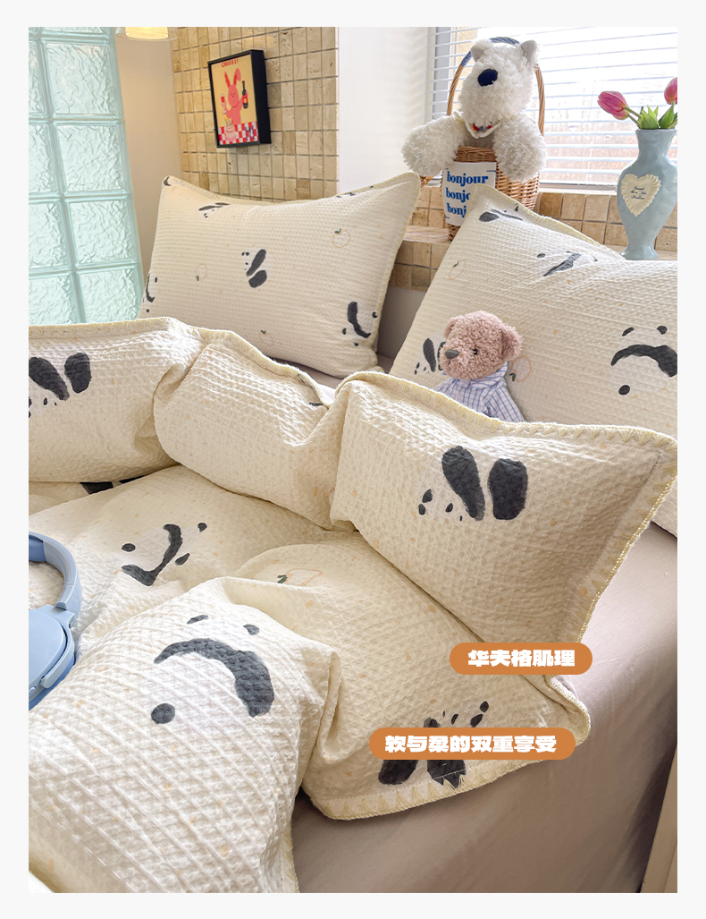 2025新款A类全棉双层纱印加绣呆萌系列四件套