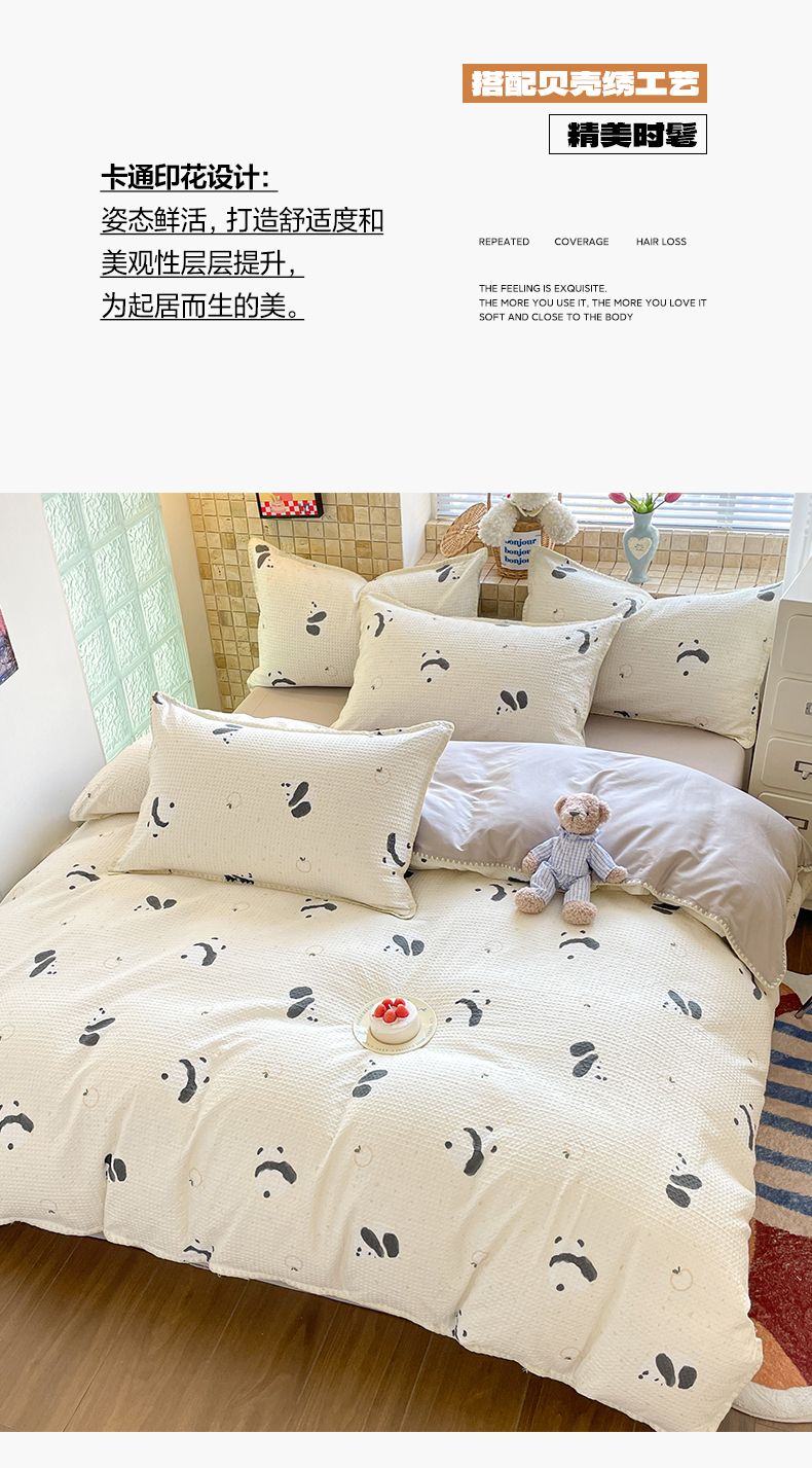 全棉A类色织水洗棉贝壳绣学生宿舍床系列