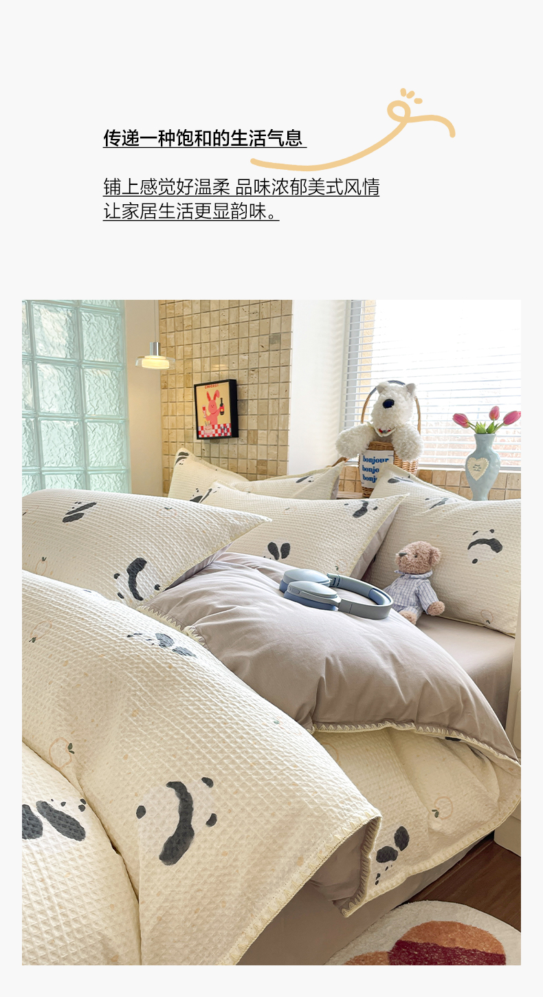 2025新款A类高克重牛奶绒泡泡绒印花美拉德风系列四件套
