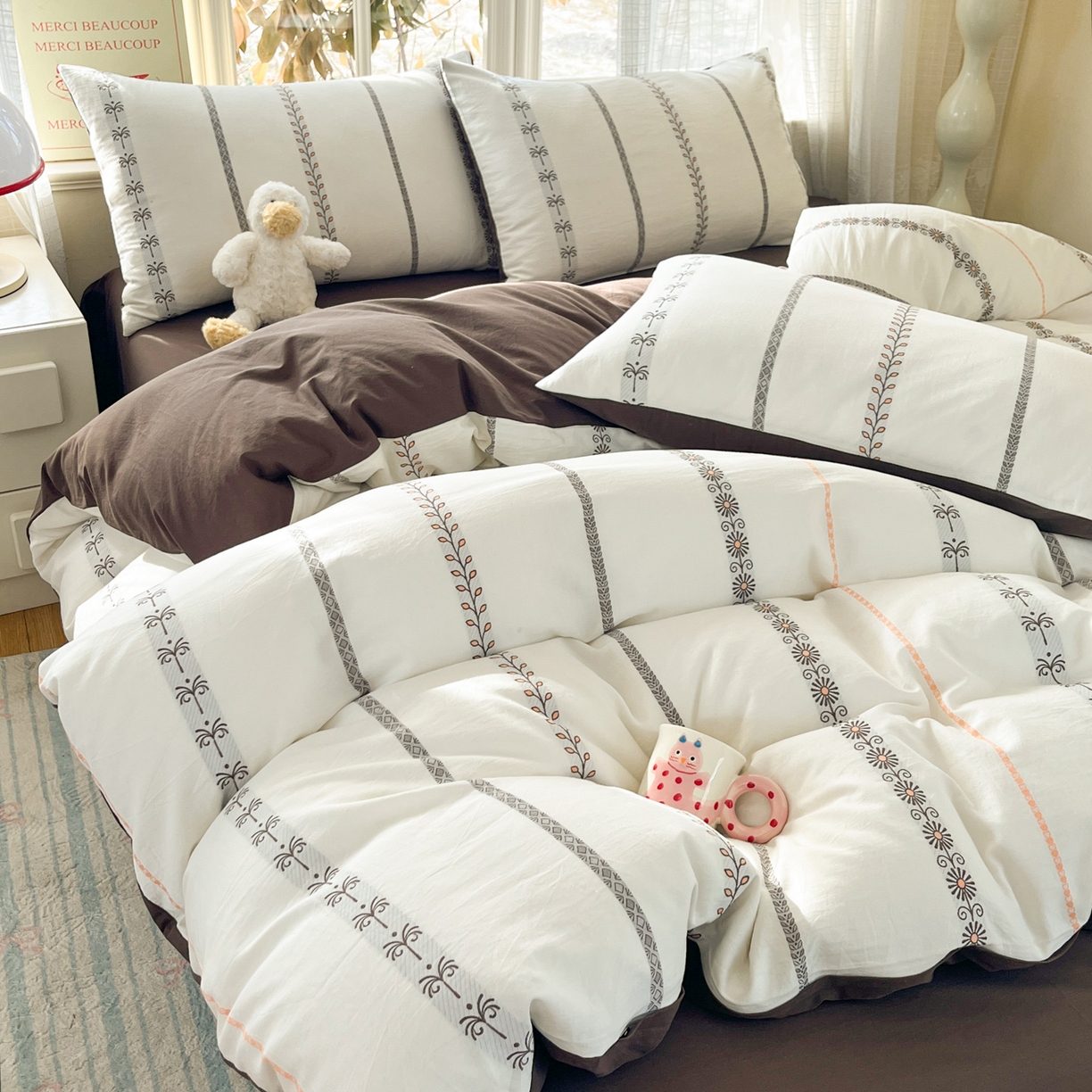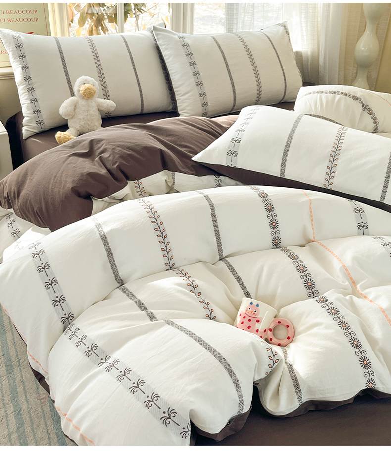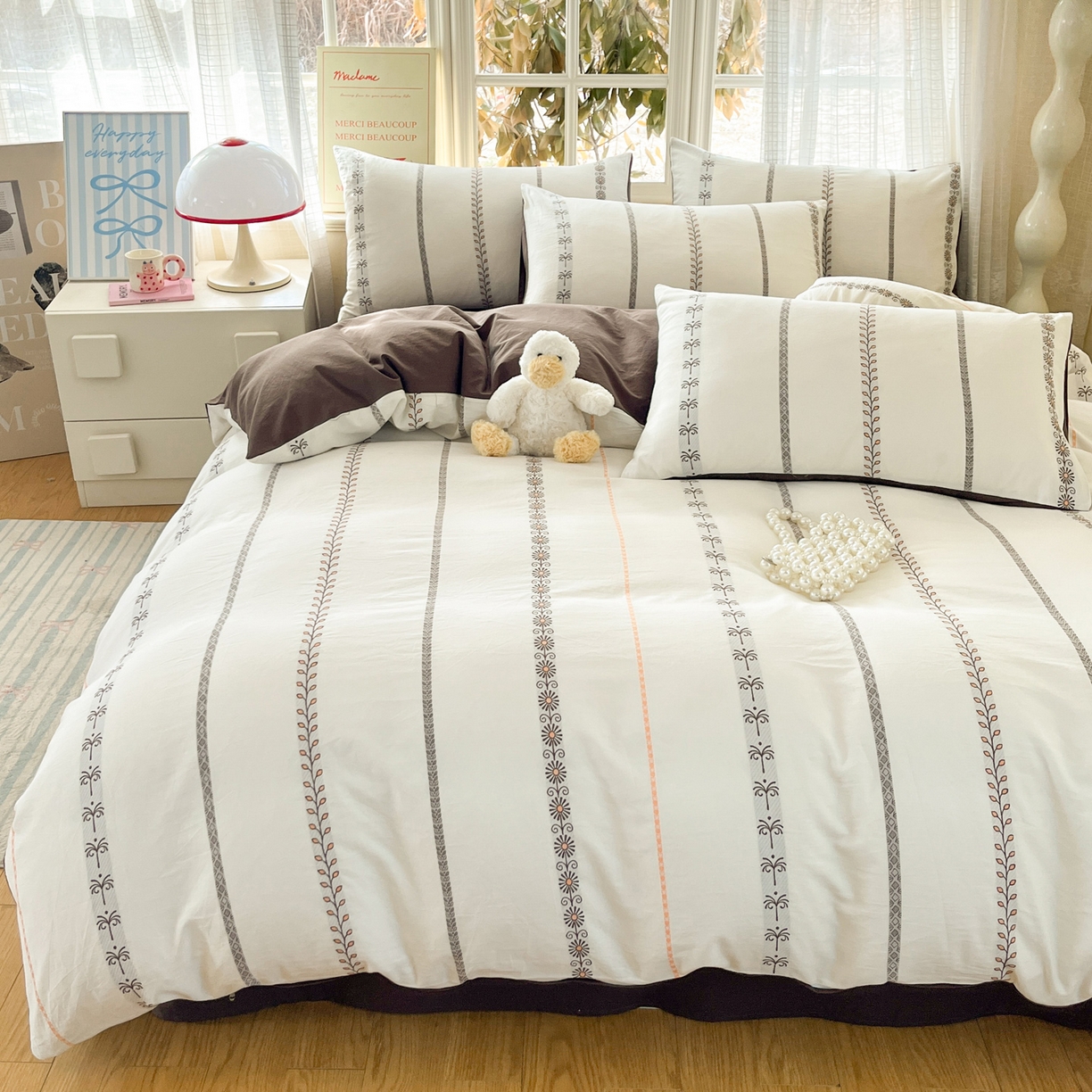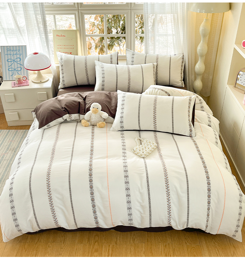 2025新款A类全棉色织水洗棉贝壳绣条纹系列四件套