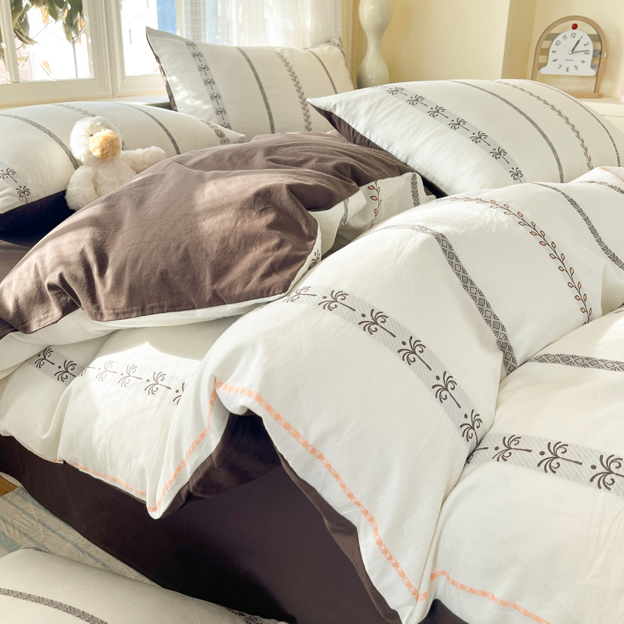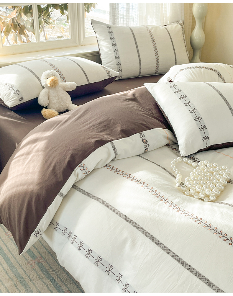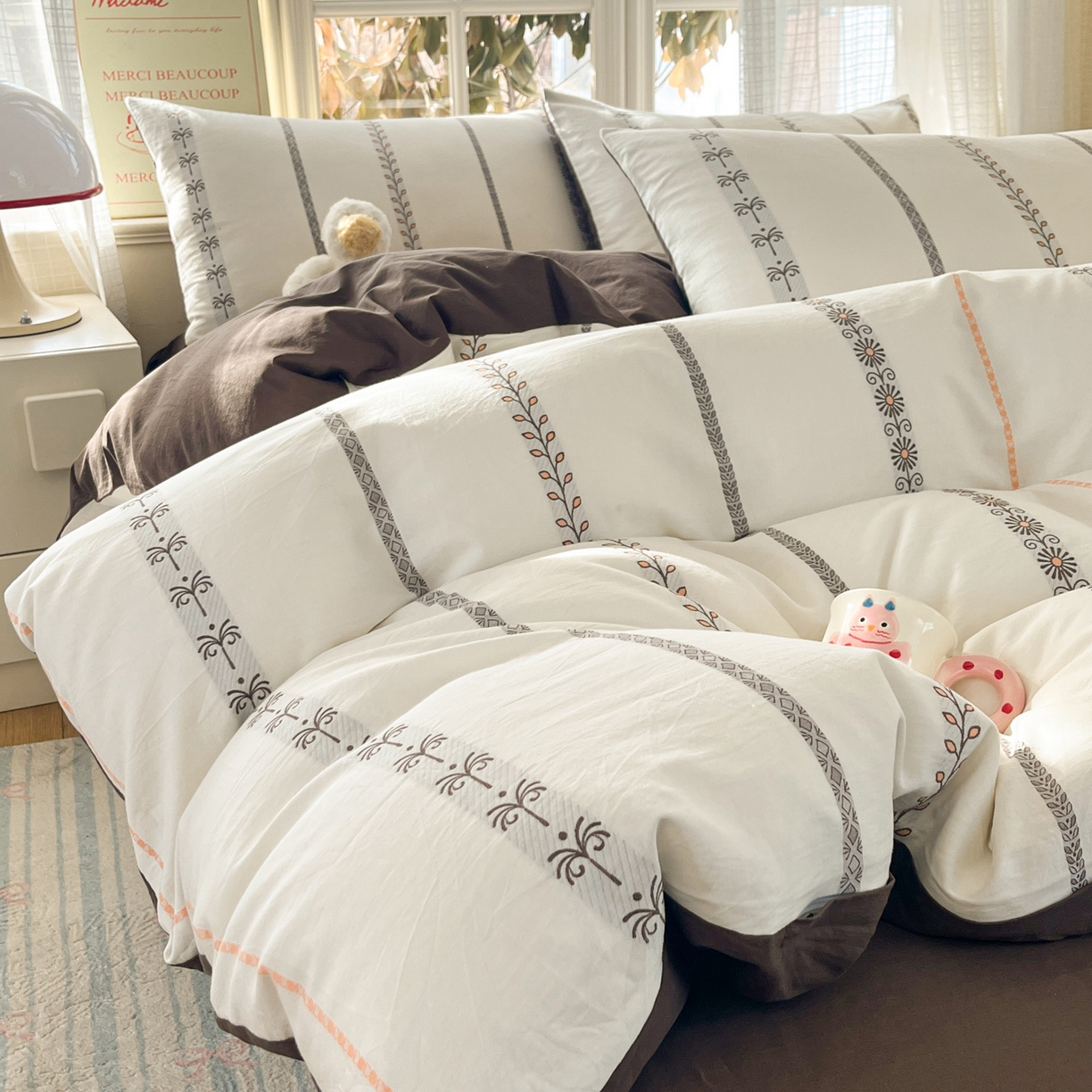 2025新款A类全棉色织水洗棉贝壳绣条纹系列四件套