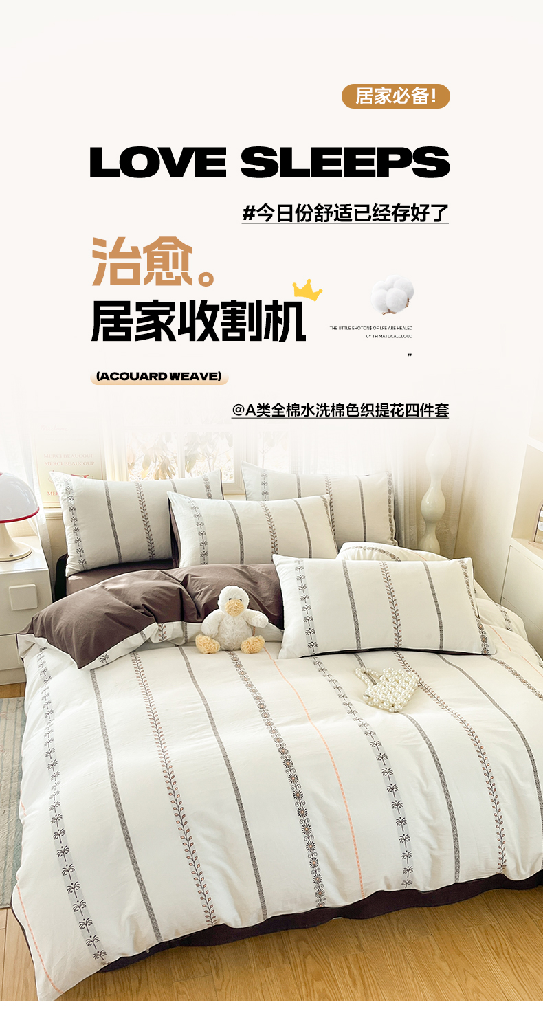 2026新款全棉A类三层纱水洗棉色织提花四件套系列