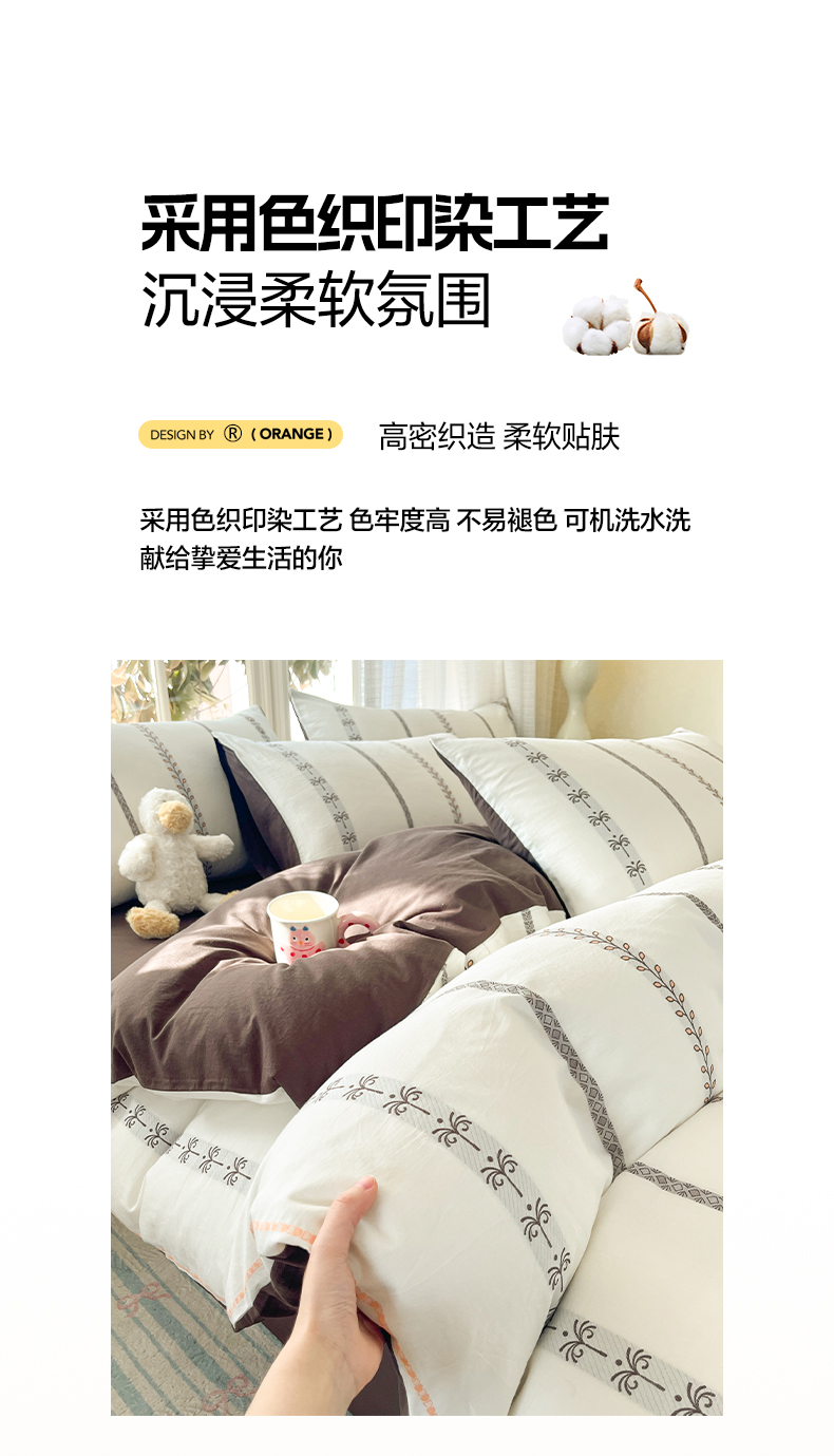 全棉A类色织水洗棉贝壳绣学生宿舍床系列