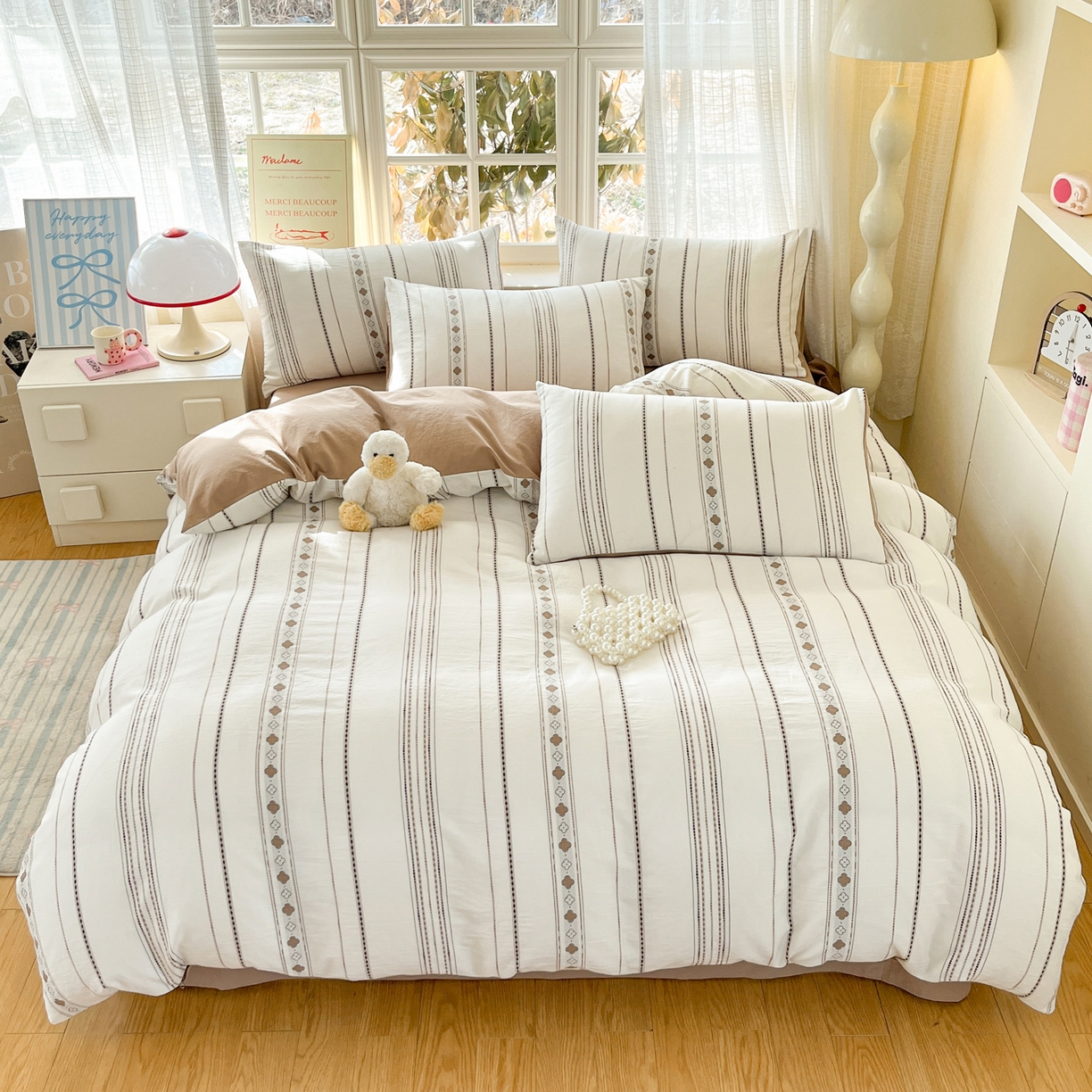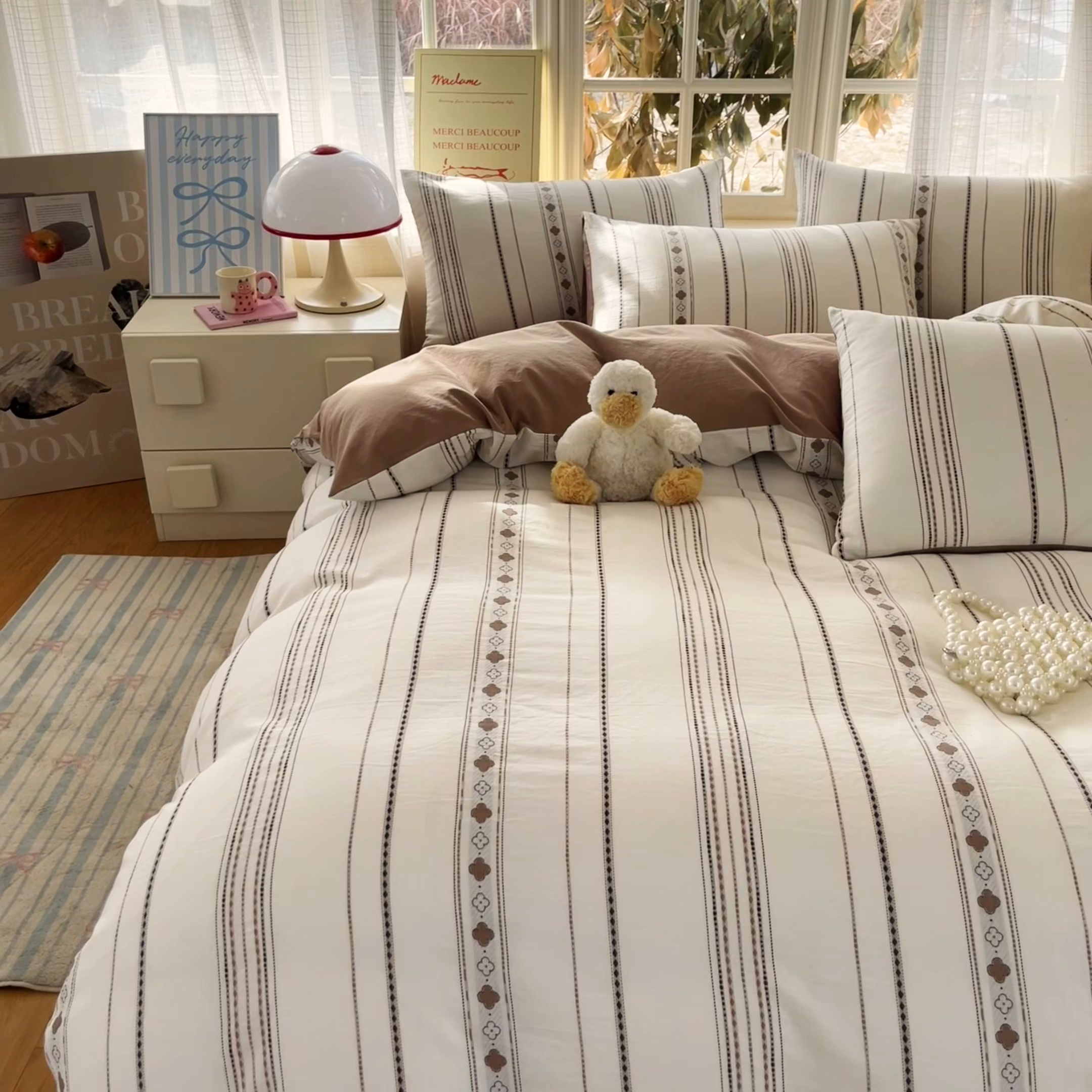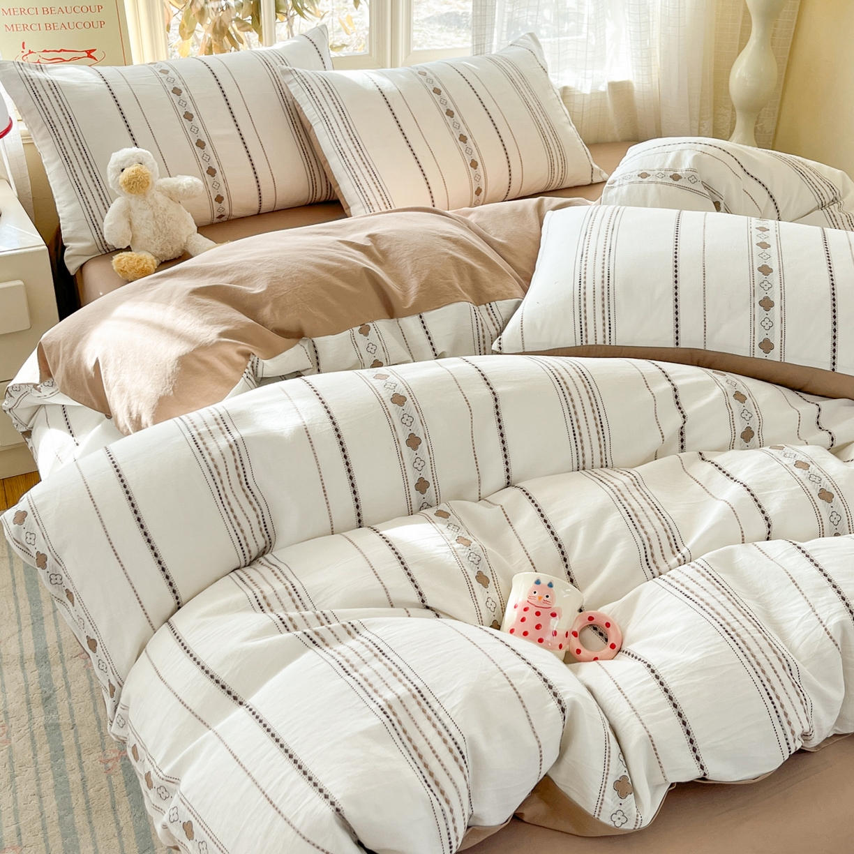 2025新款A类高克重牛奶绒泡泡绒印花美拉德风系列四件套