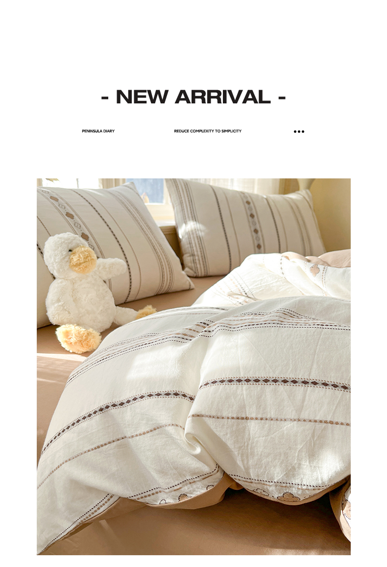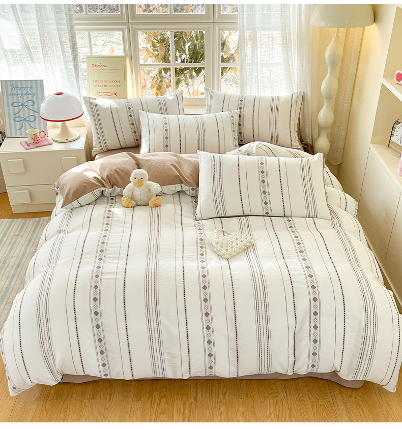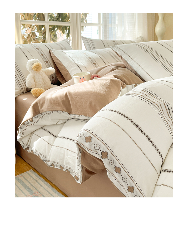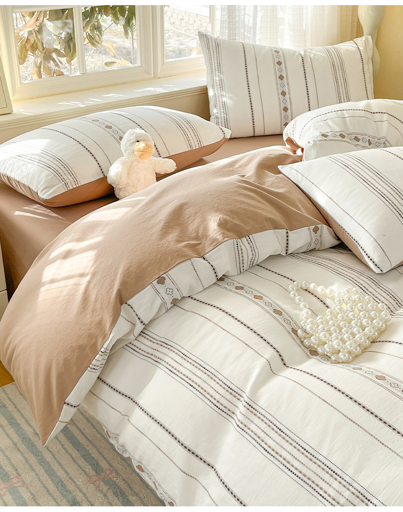 2025新款A类全棉色织水洗棉贝壳绣条纹系列四件套