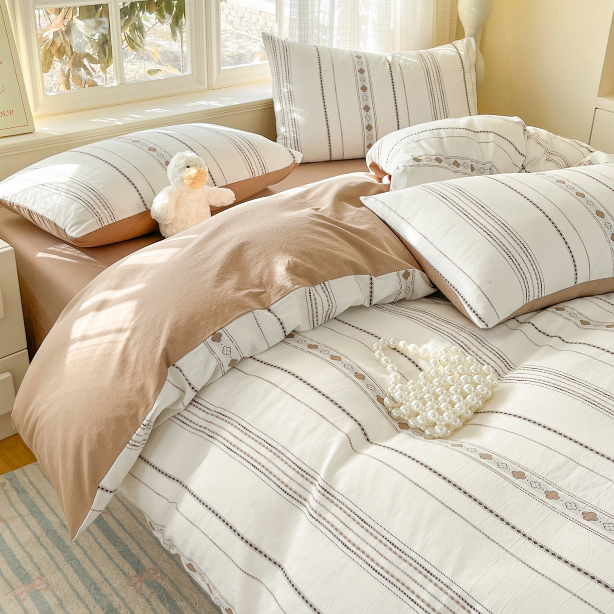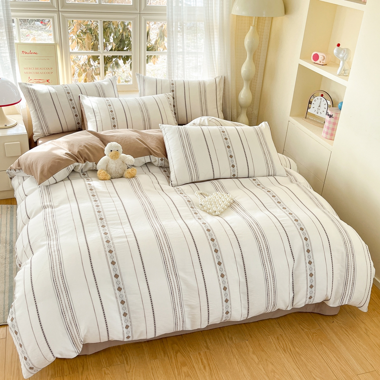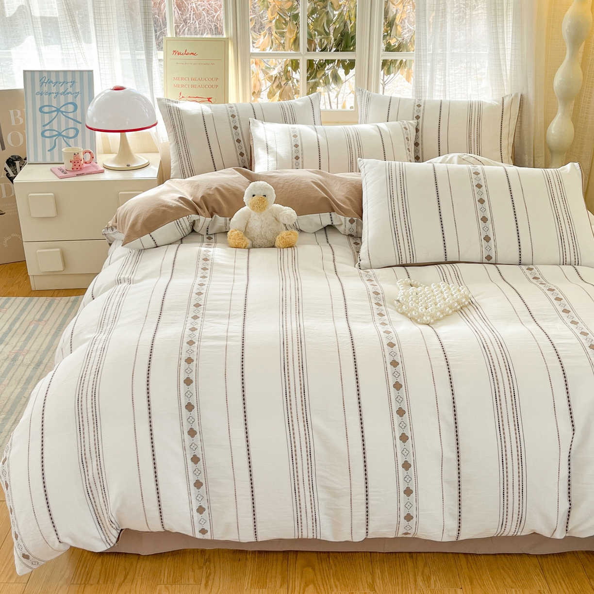 2025新款A类全棉色织水洗棉贝壳绣条纹系列四件套
