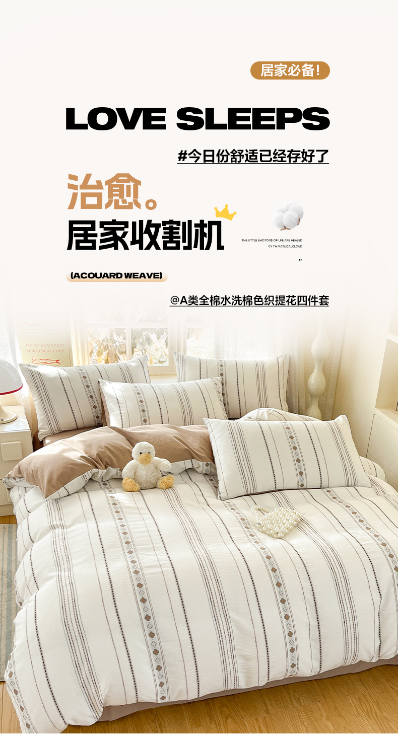 2026新款全棉A类三层纱水洗棉色织提花四件套系列