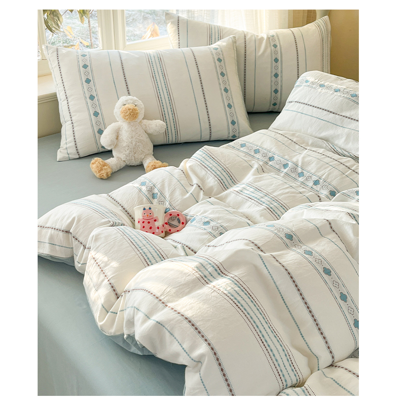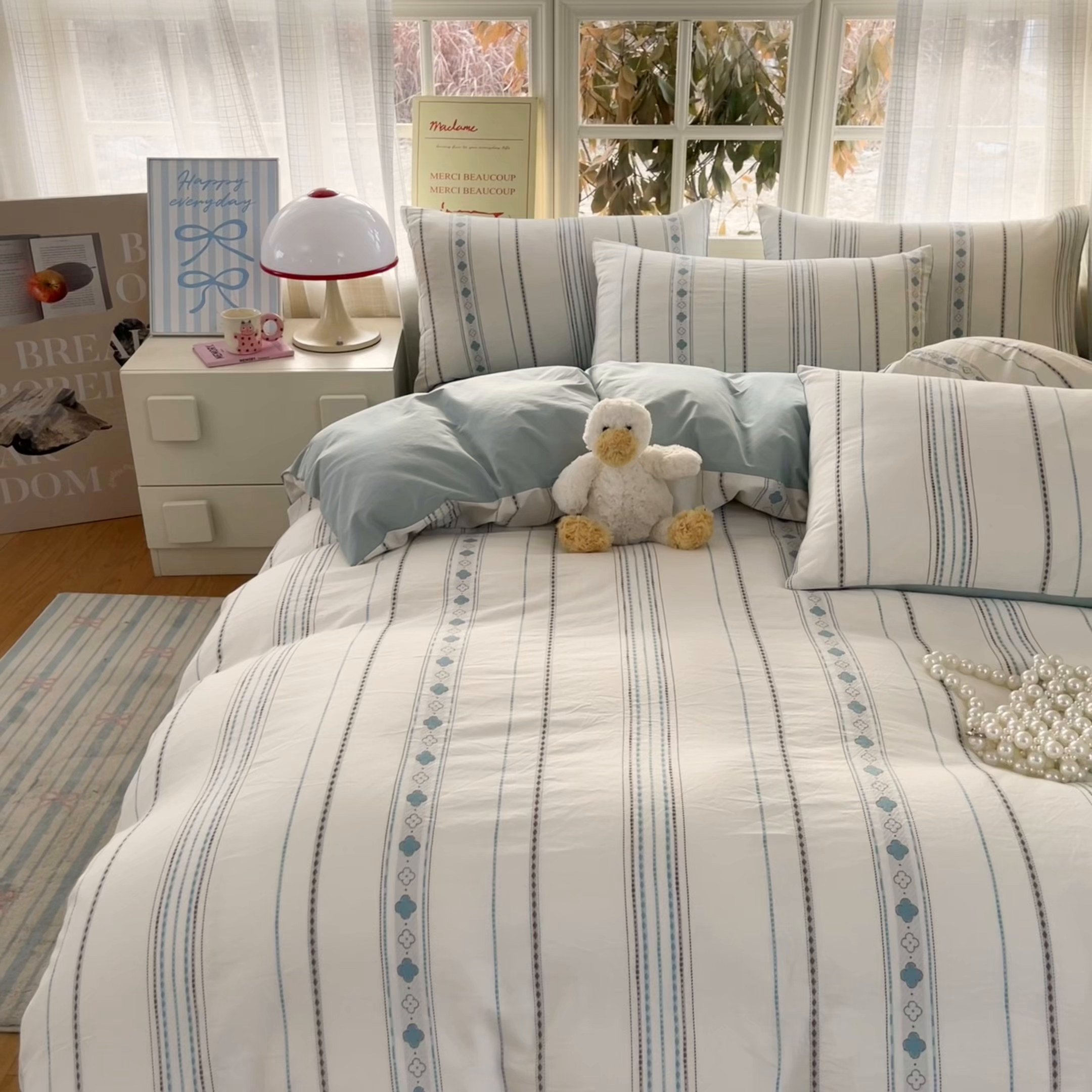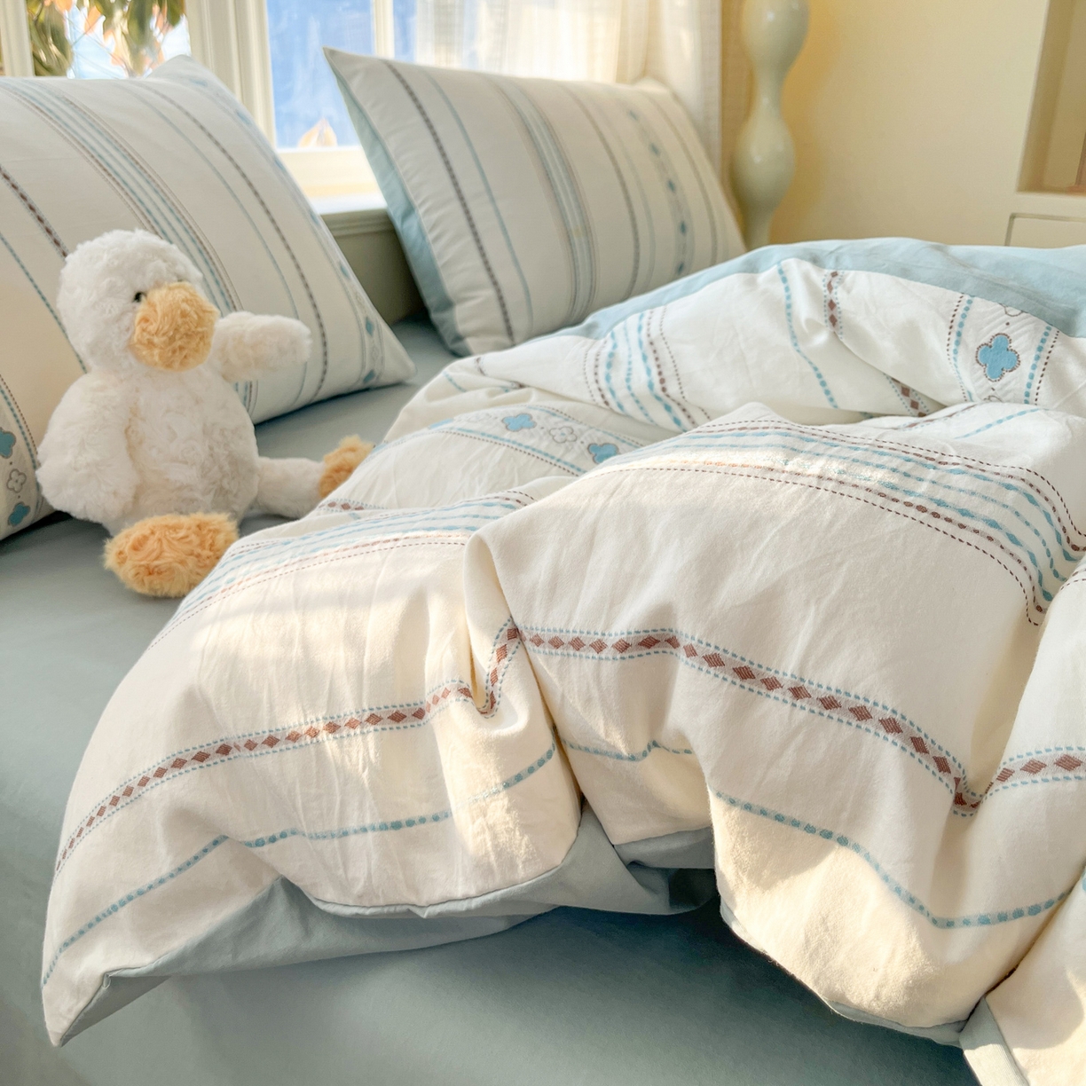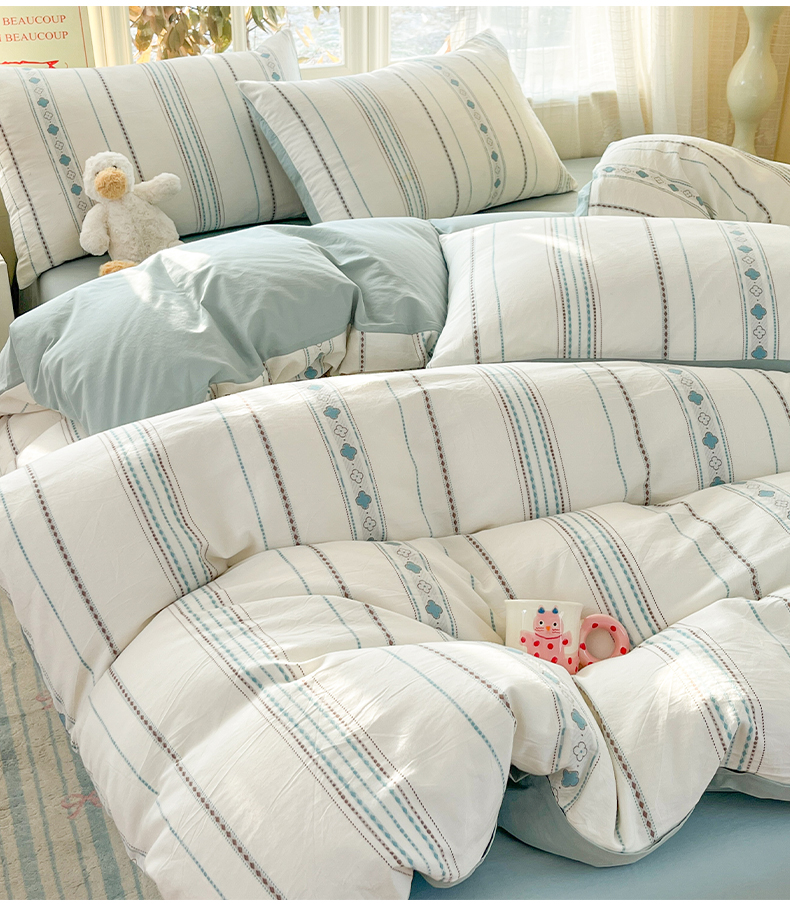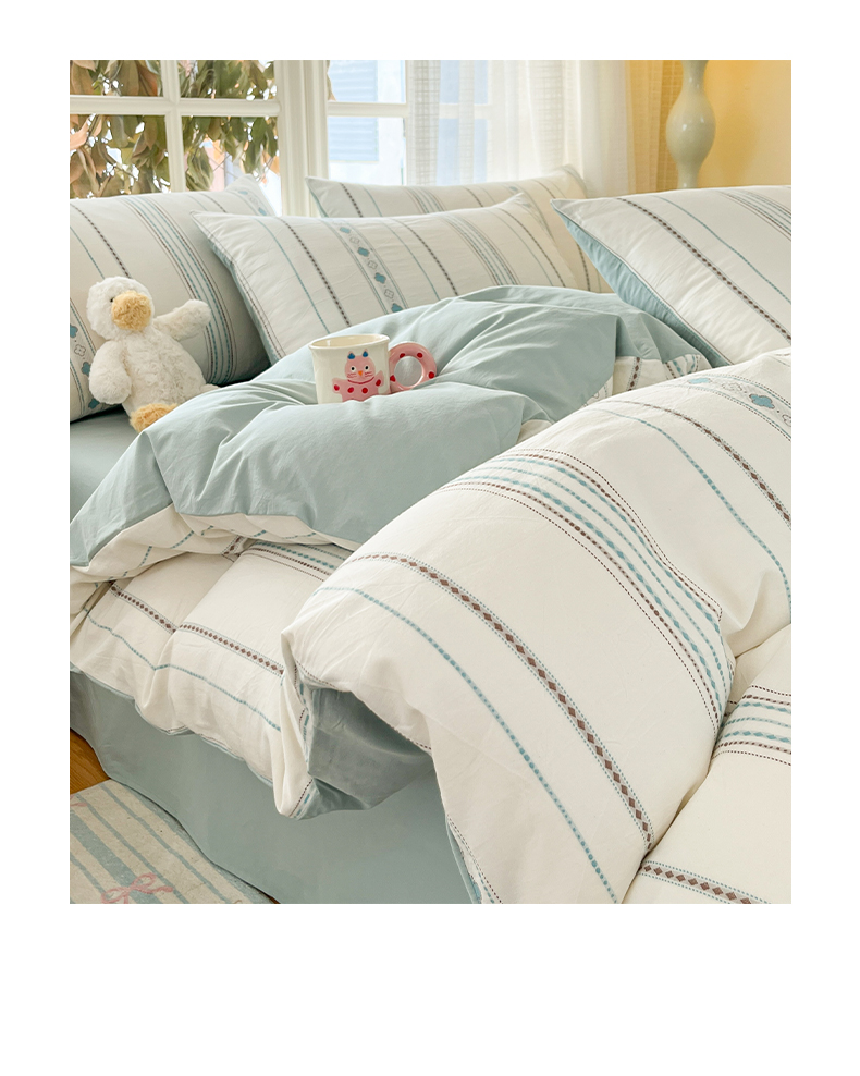 2025新款A类全棉色织水洗棉贝壳绣条纹系列四件套