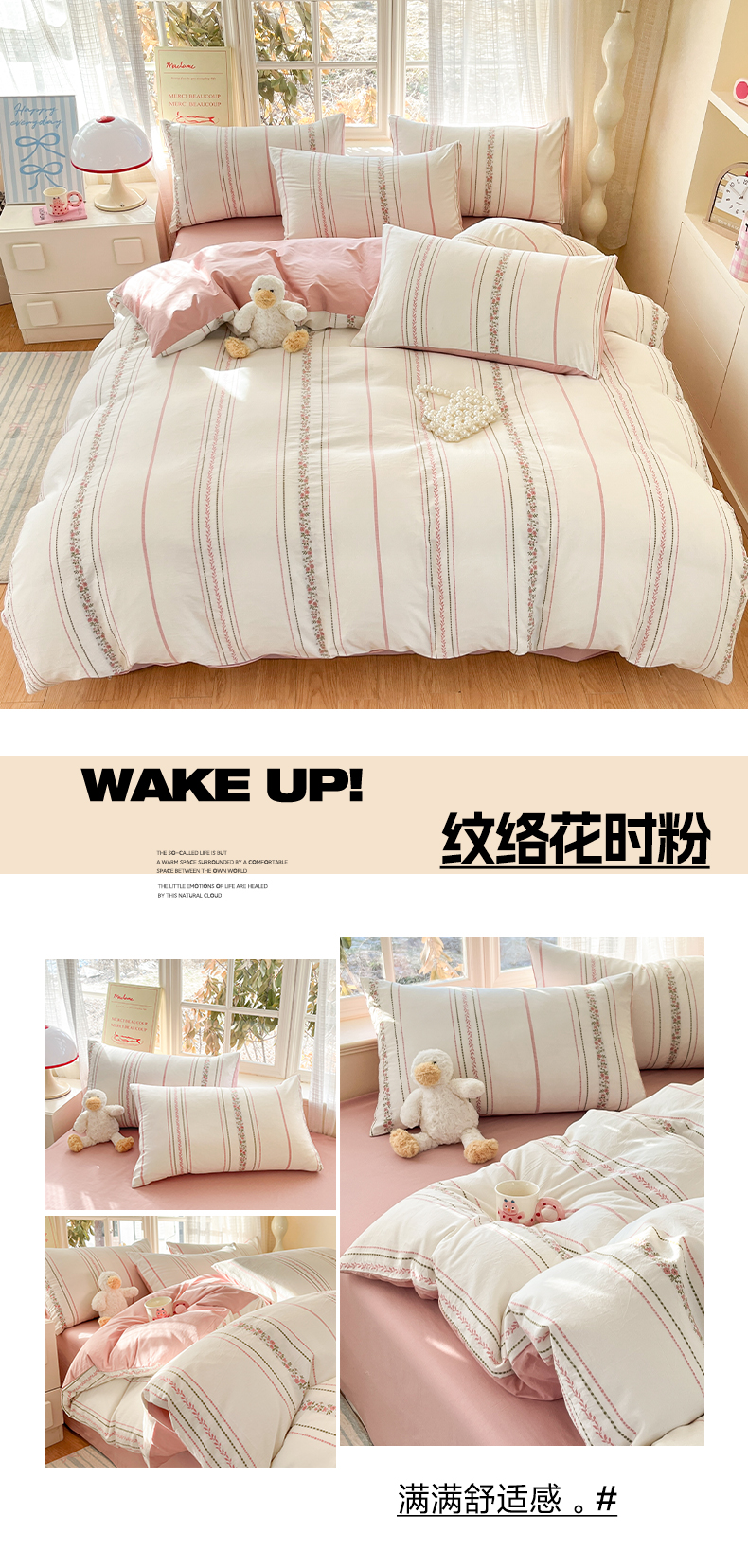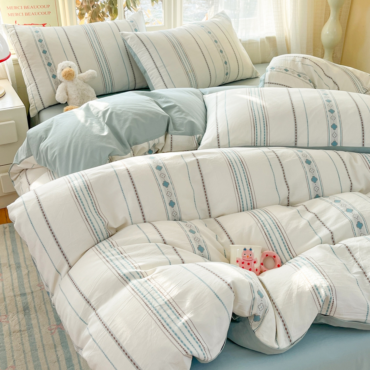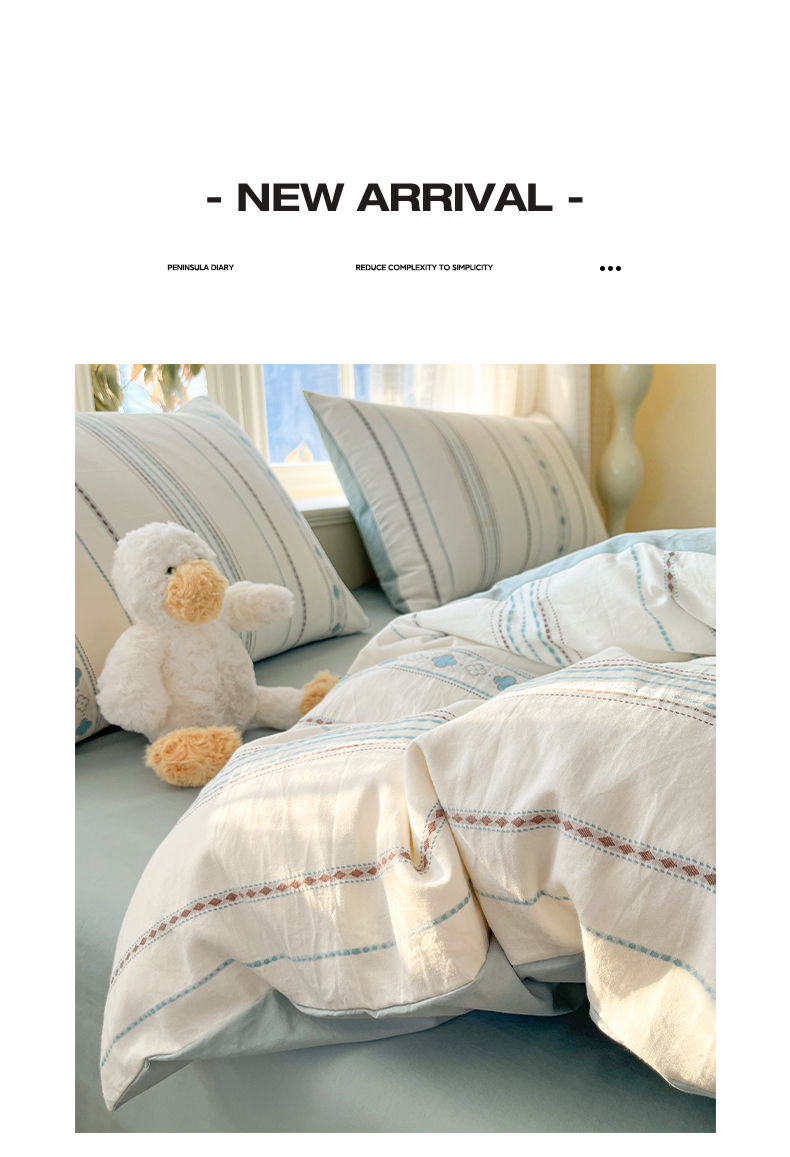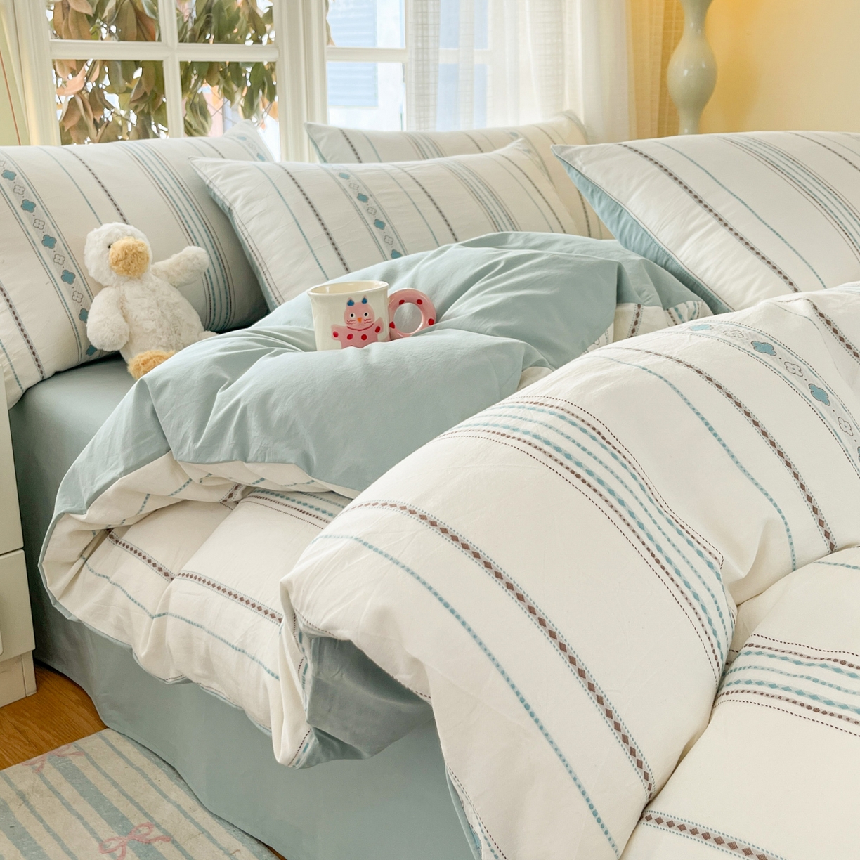 2025新款A类全棉色织水洗棉贝壳绣条纹系列四件套