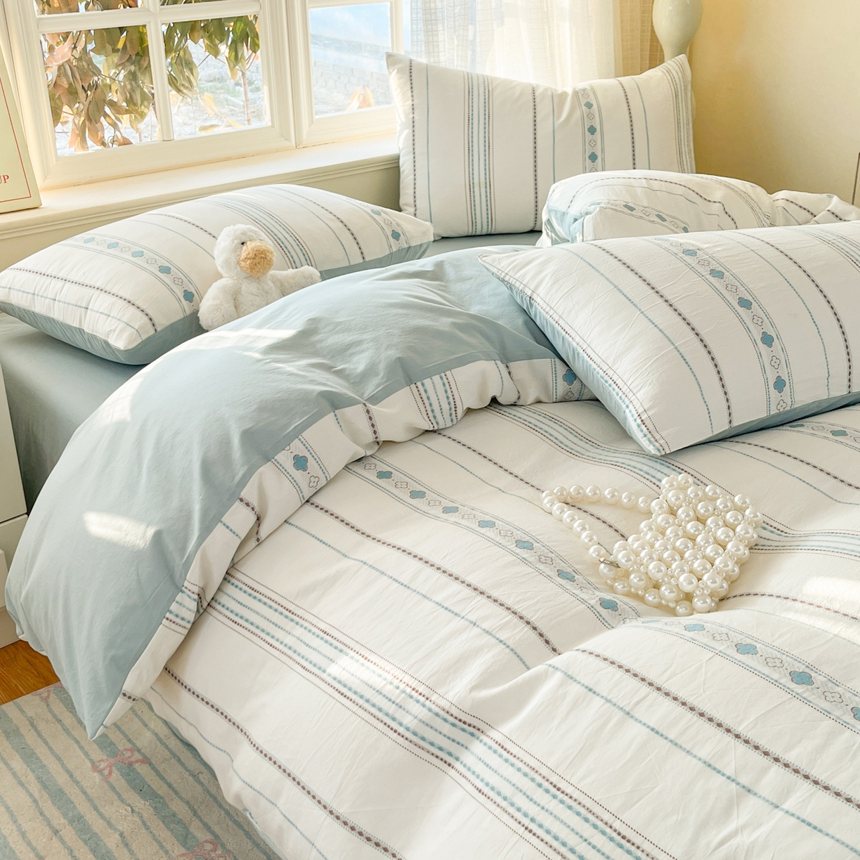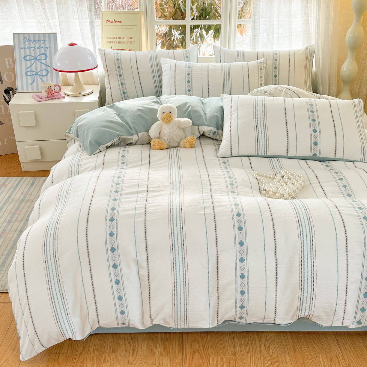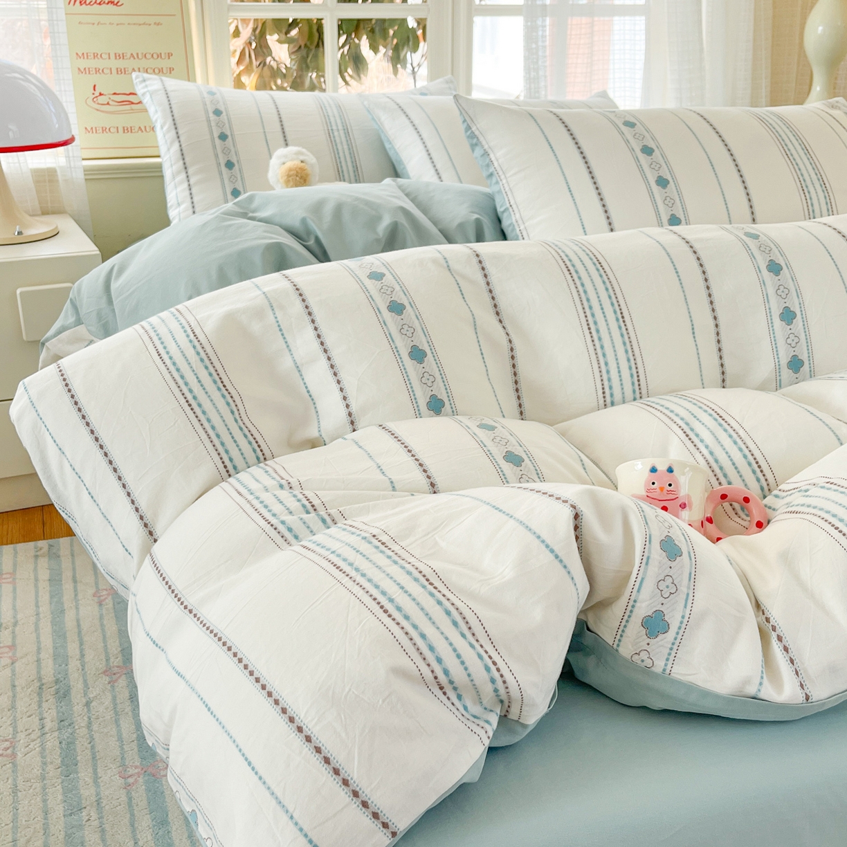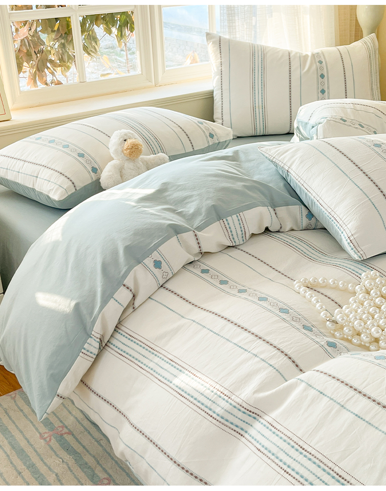 2025新款A类全棉色织水洗棉贝壳绣条纹系列四件套
