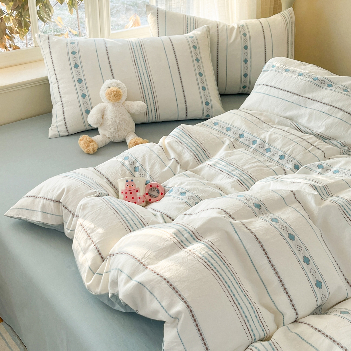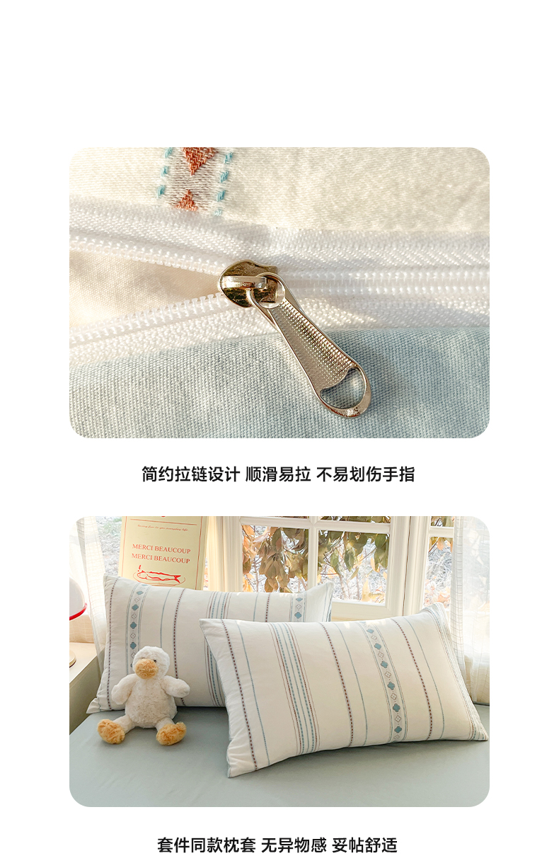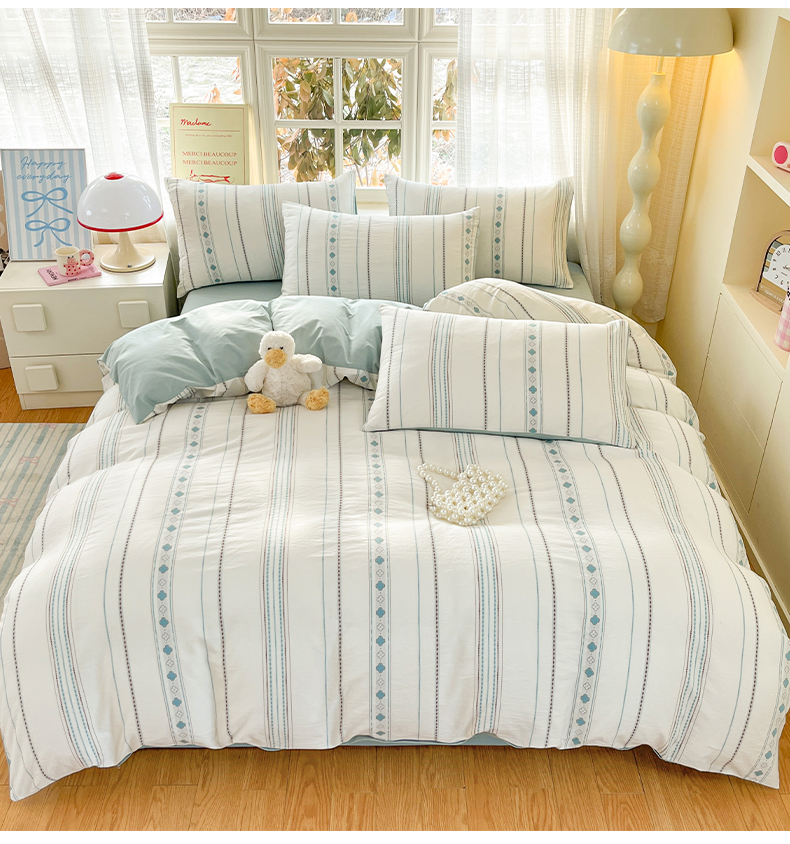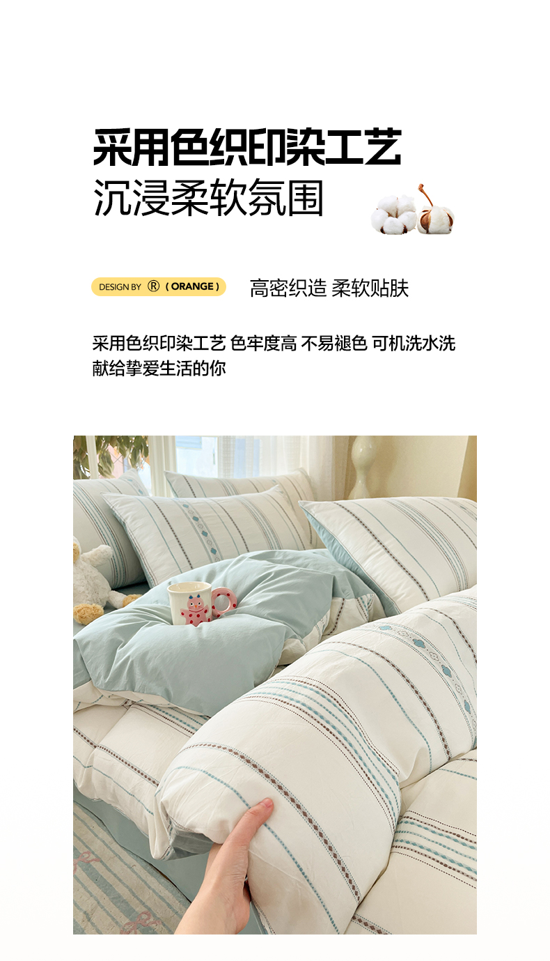 全棉A类色织水洗棉贝壳绣学生宿舍床系列