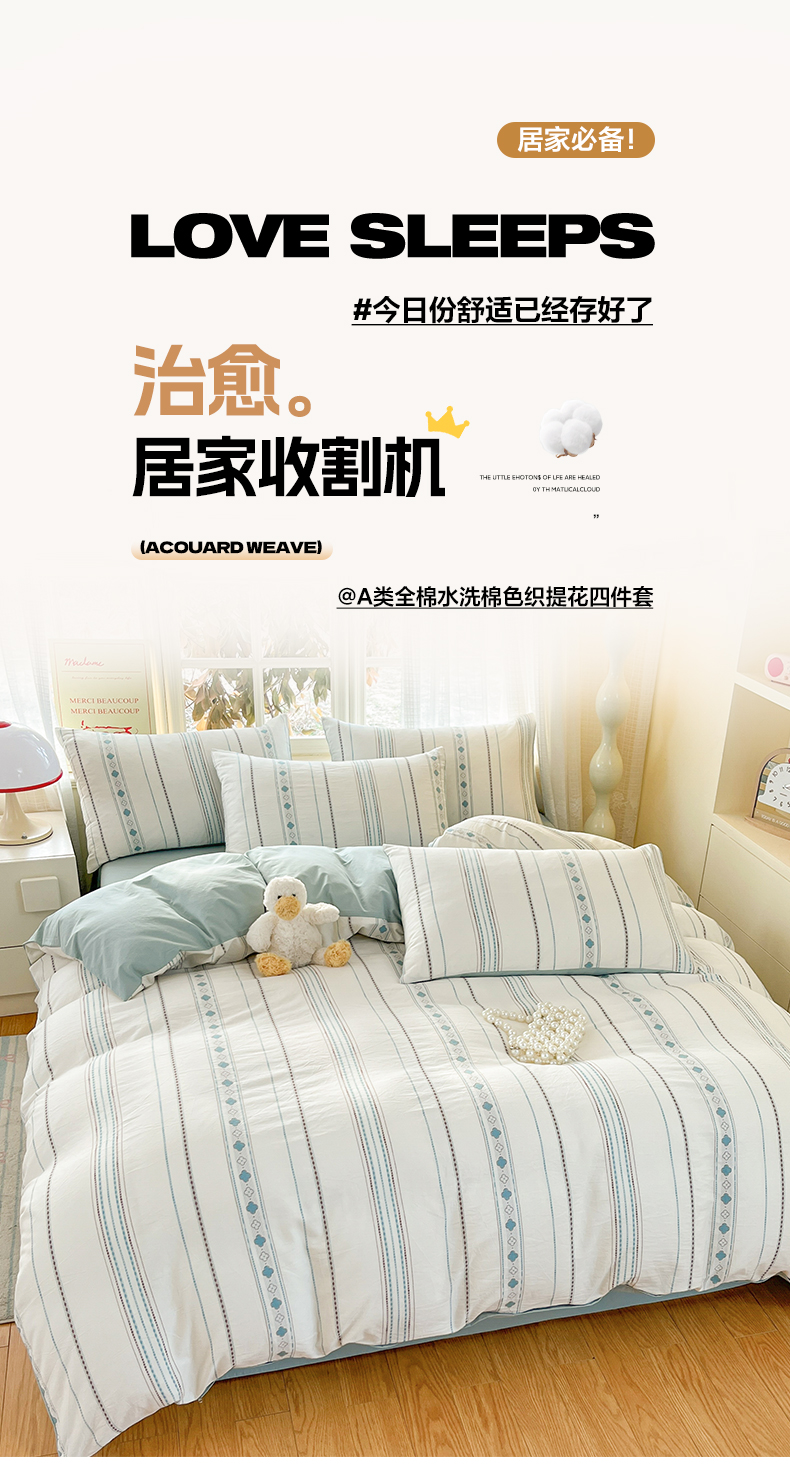 2026新款全棉A类三层纱水洗棉色织提花四件套系列