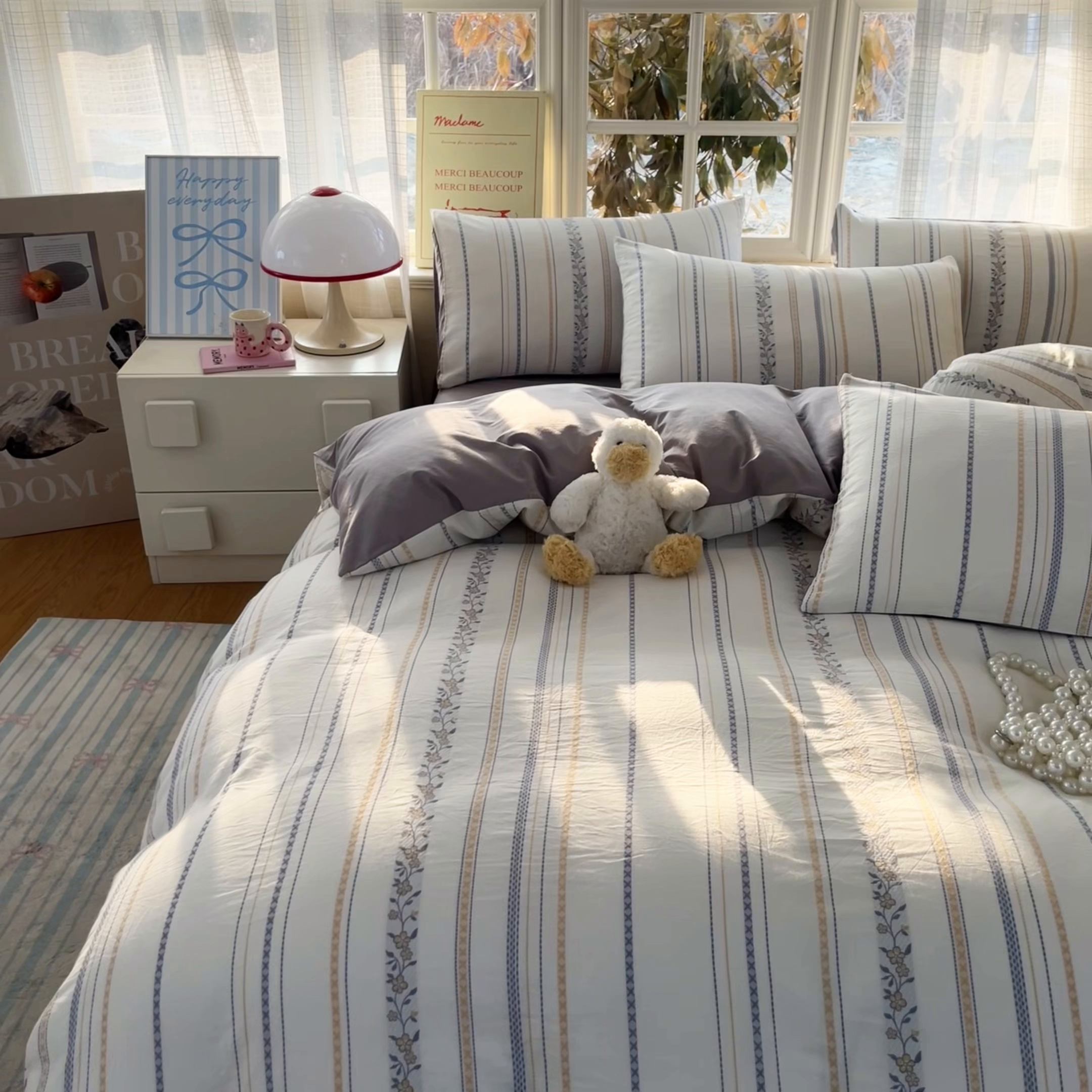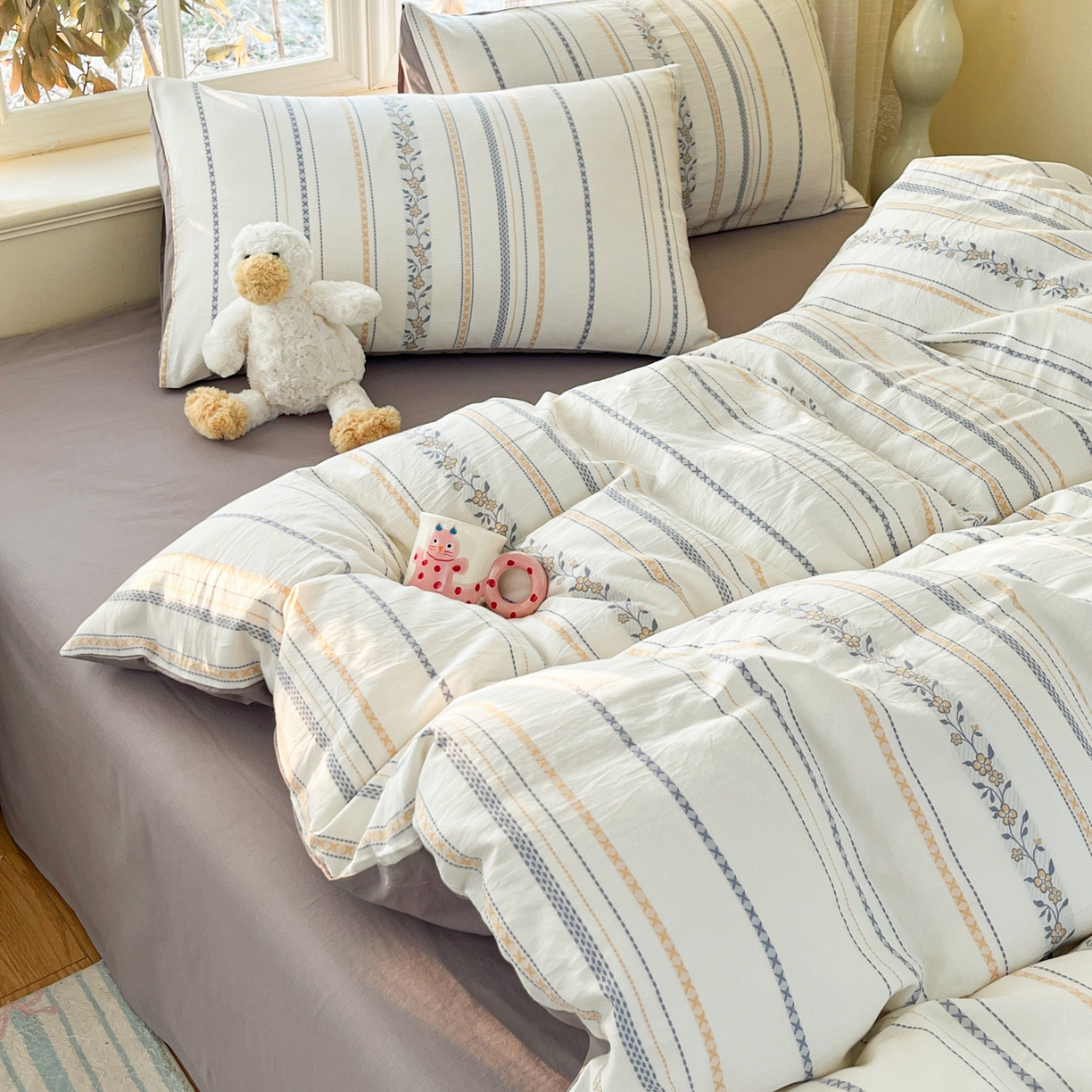 A类全棉良品风学生宿舍床三件套