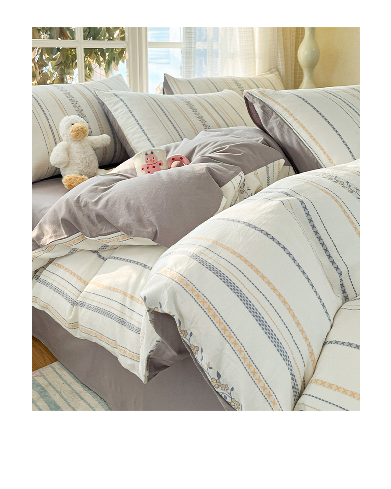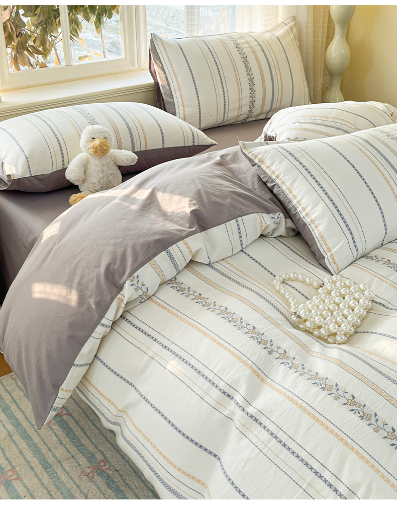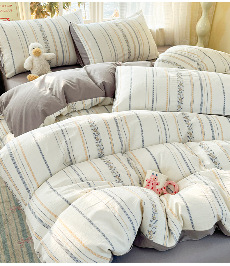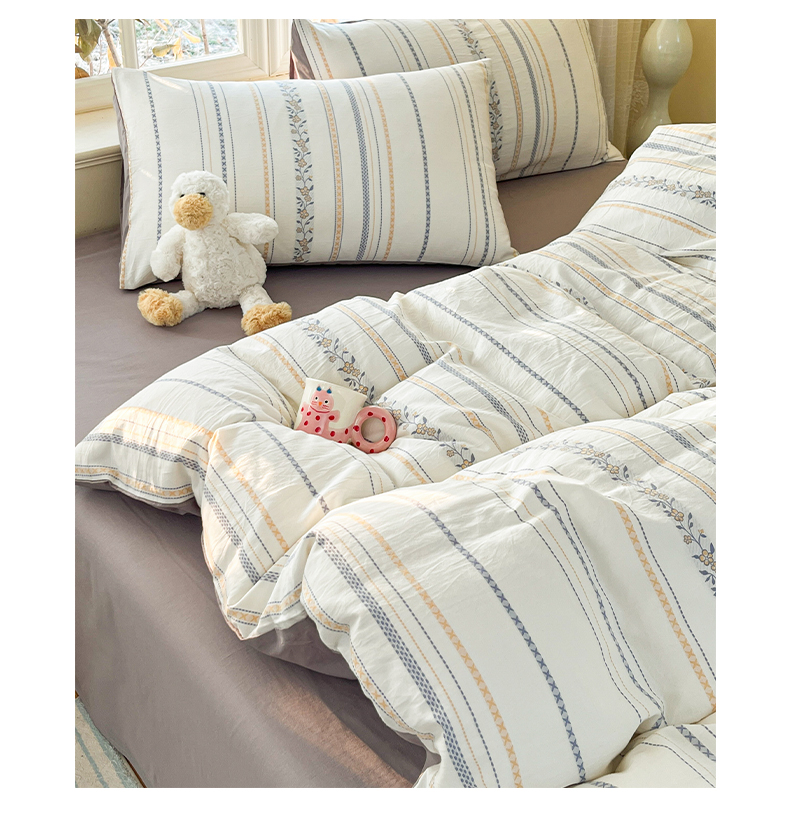 2025新款A类全棉色织水洗棉贝壳绣条纹系列四件套