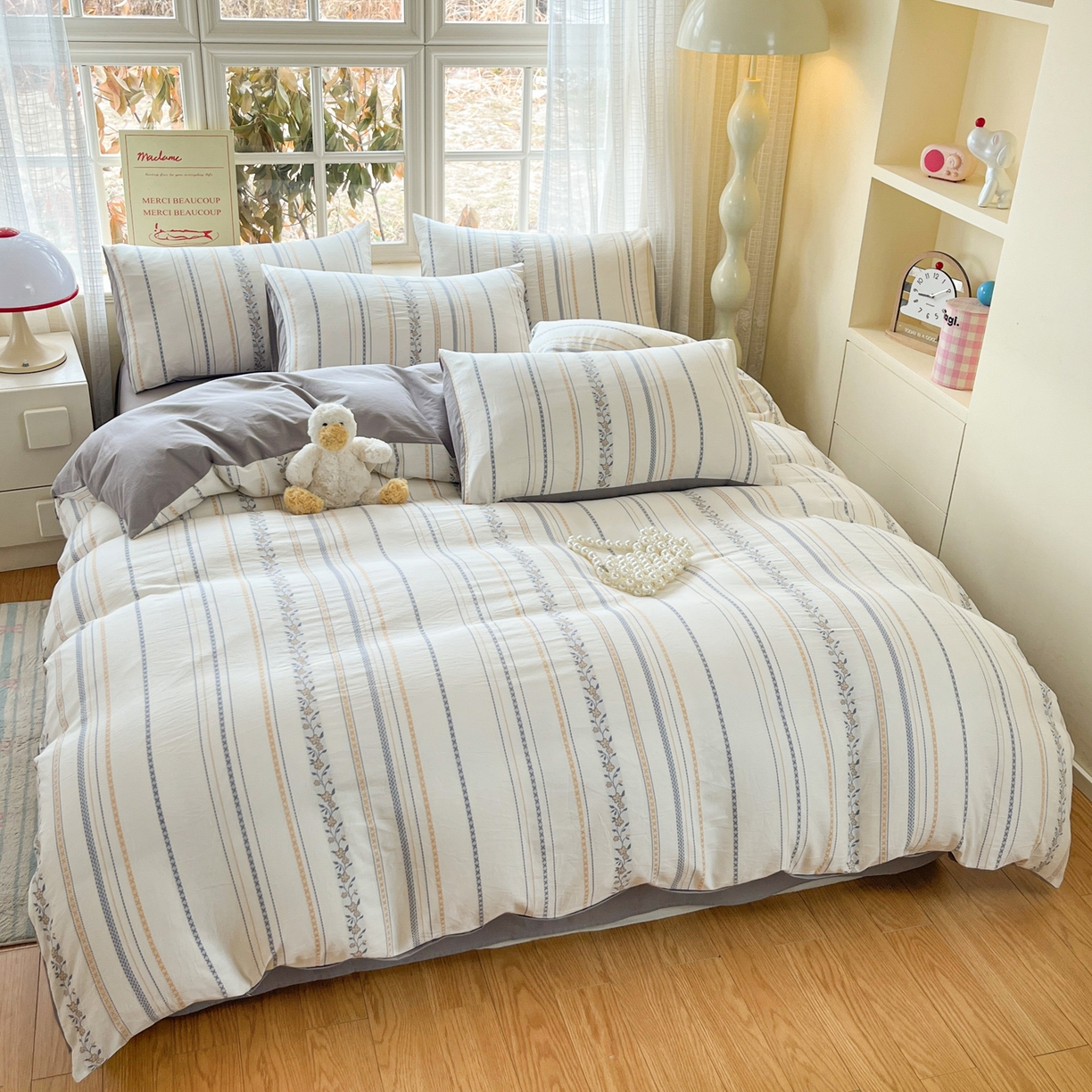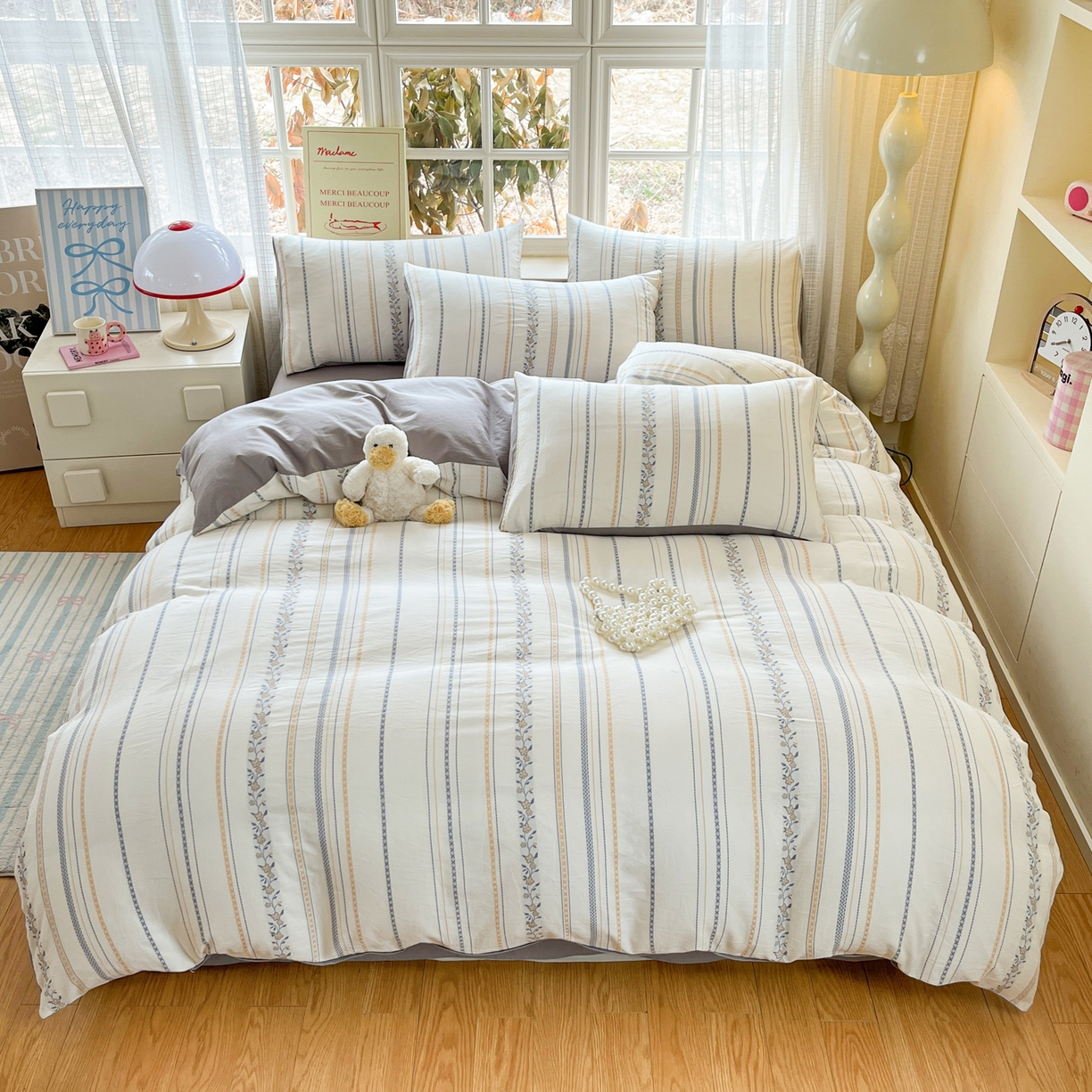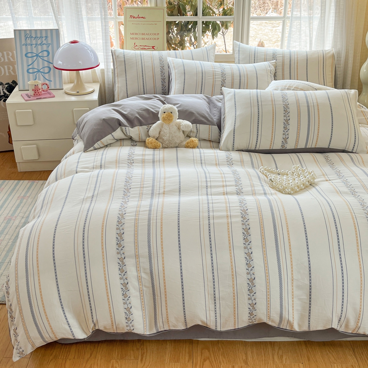 2025新款A类全棉色织水洗棉贝壳绣条纹系列四件套