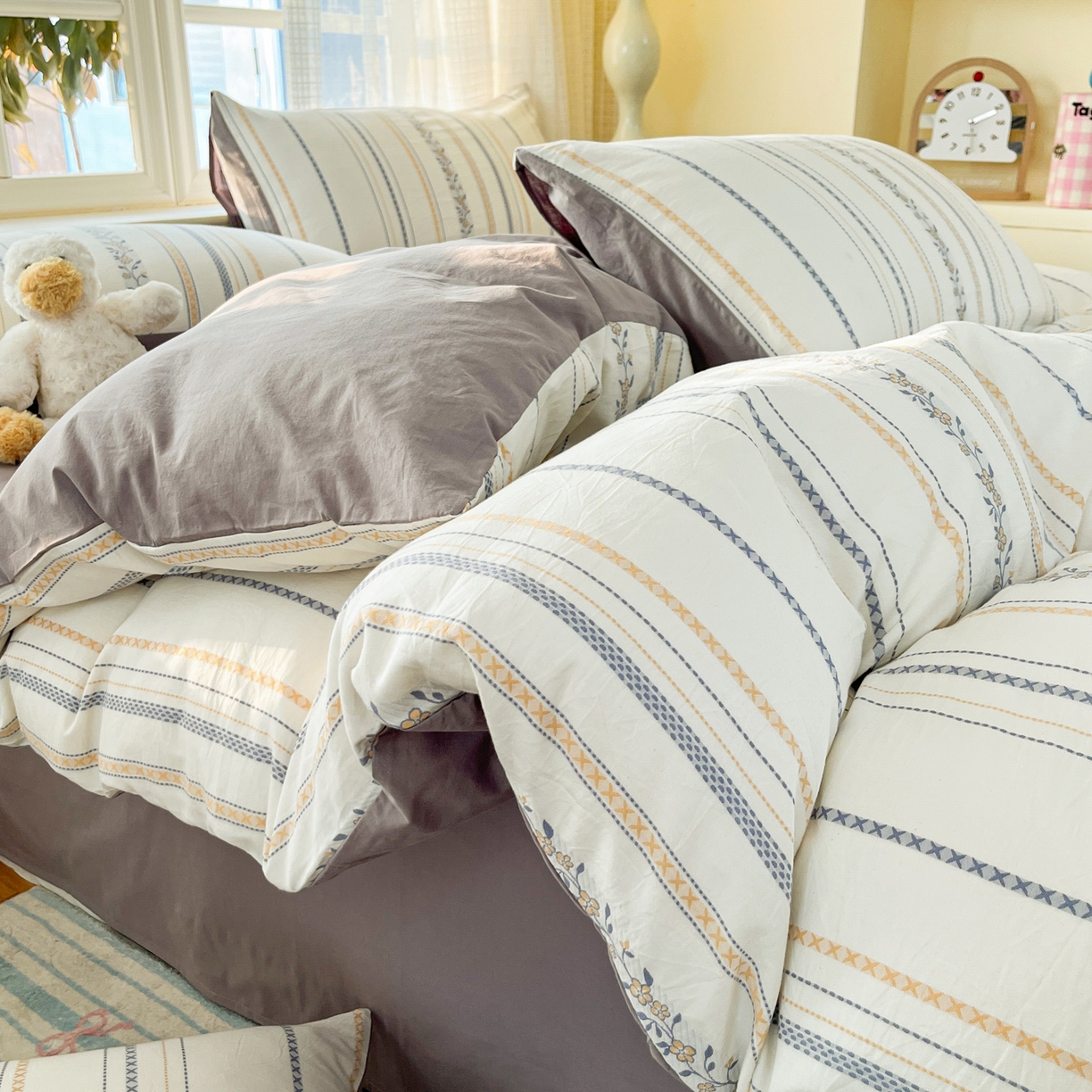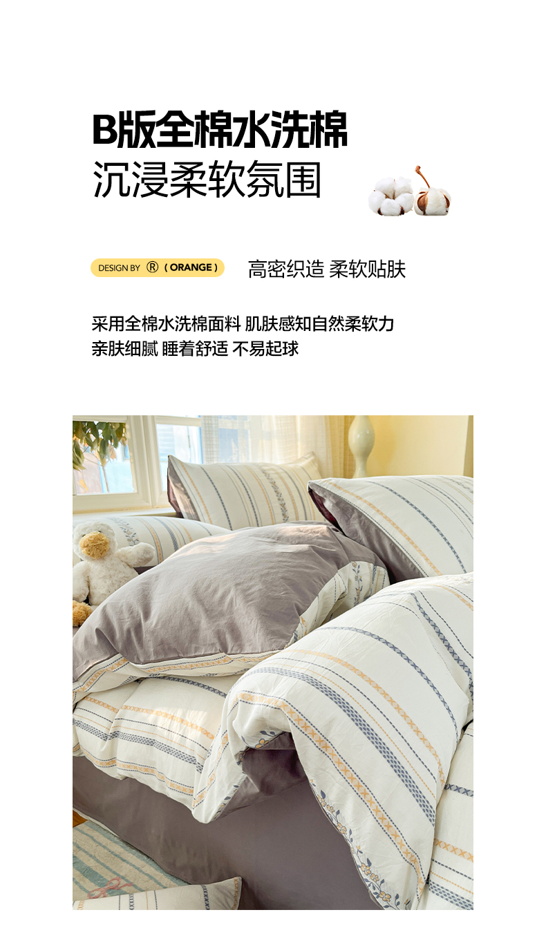 2025新款A类100%全棉磨毛条格卡通系列四件套