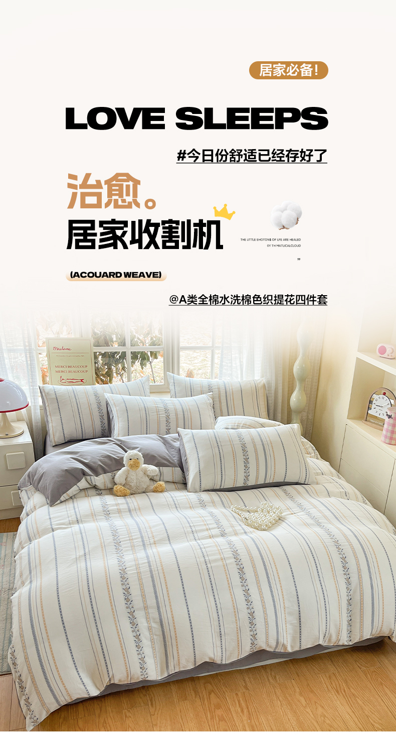 2026新款全棉A类三层纱水洗棉色织提花四件套系列