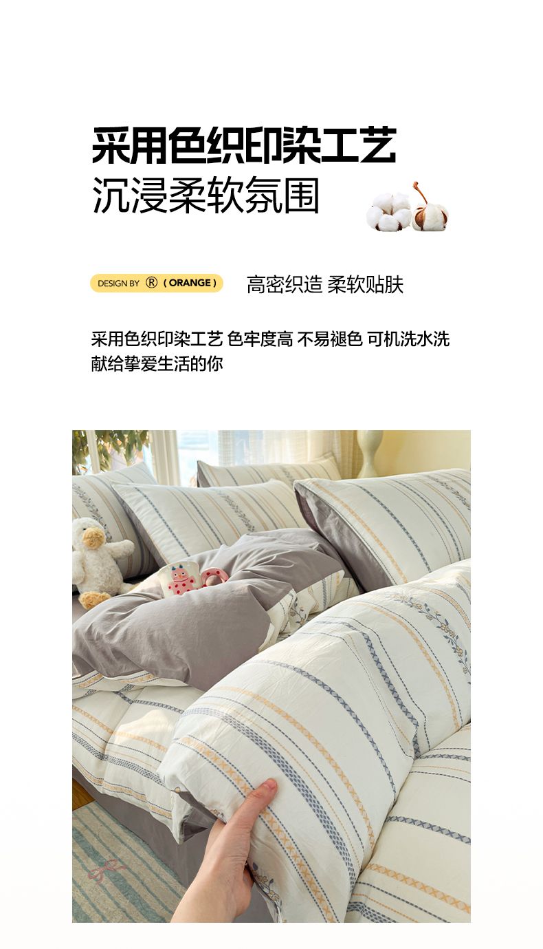 全棉A类色织水洗棉贝壳绣学生宿舍床系列