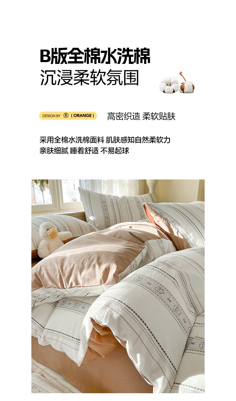 2025新款A类100%全棉磨毛条格卡通系列四件套