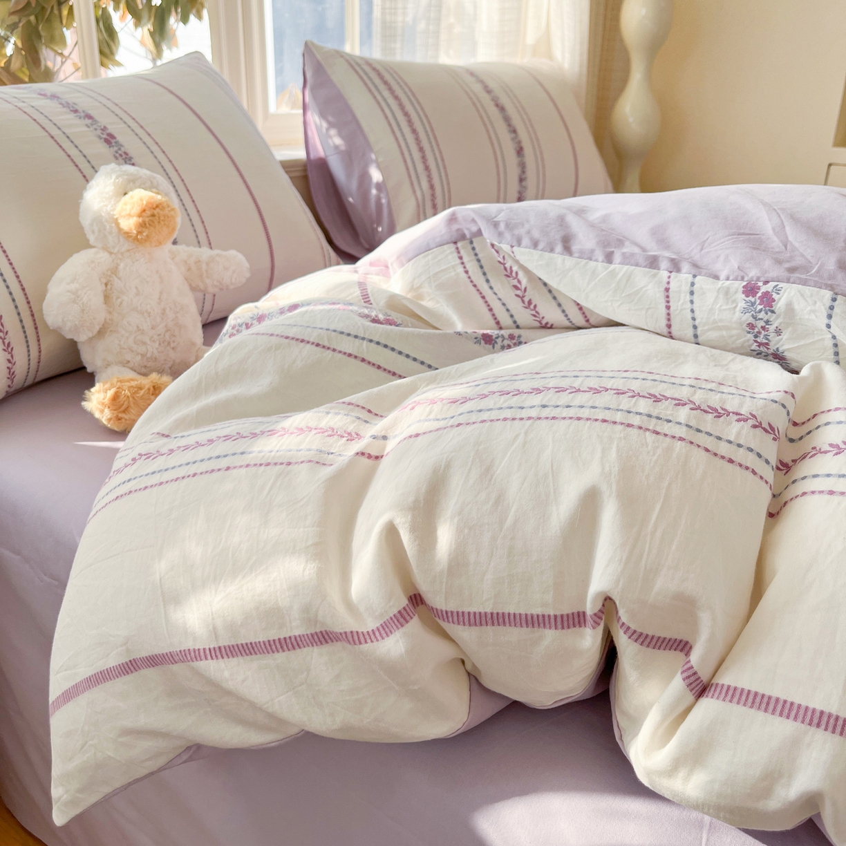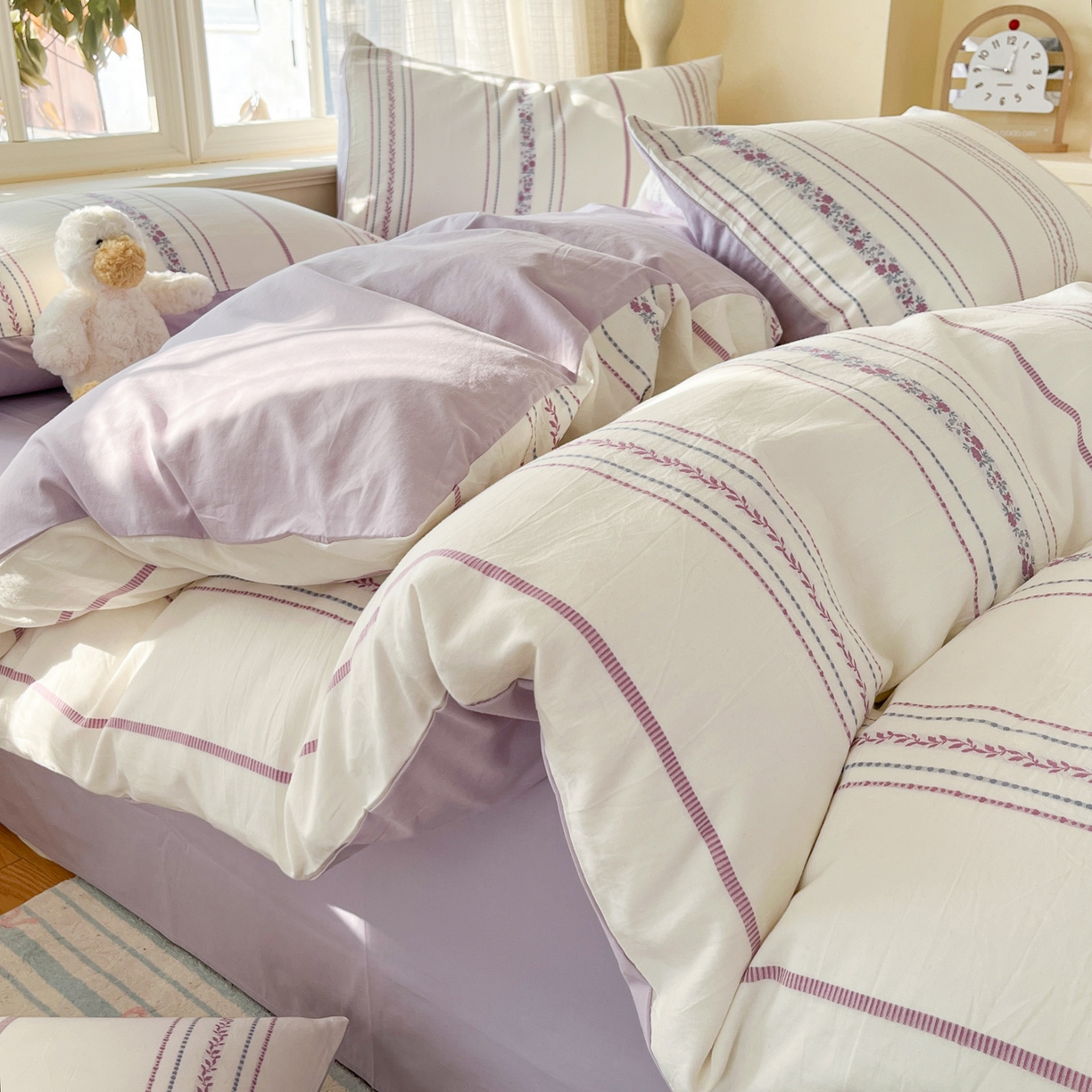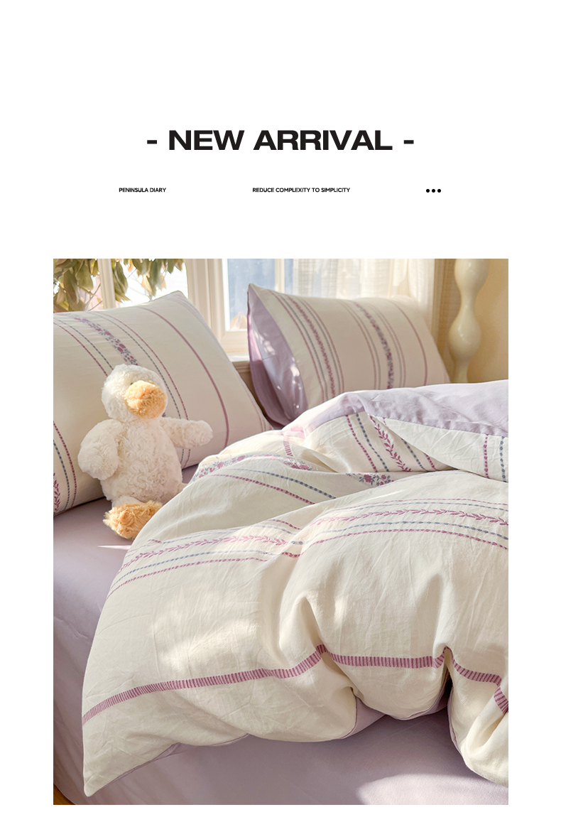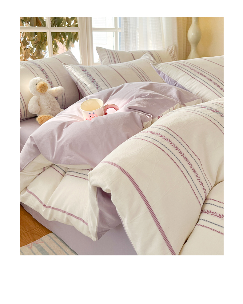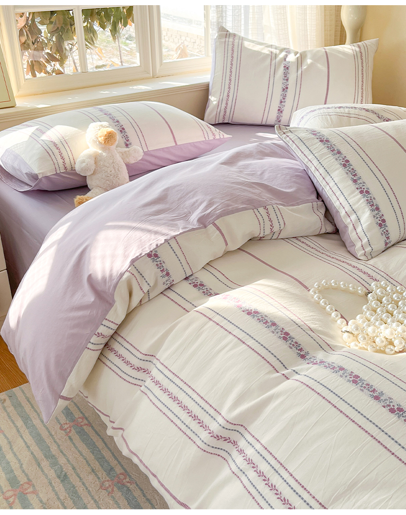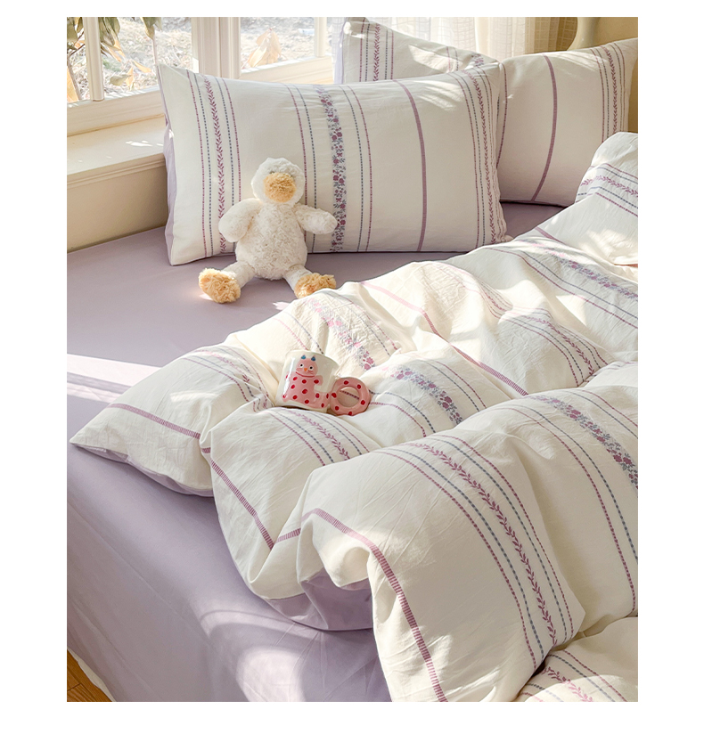 > 莱登卡奴 2026新款全棉纯棉A类水洗棉色织提花剪花系列四件套 纹络花时紫