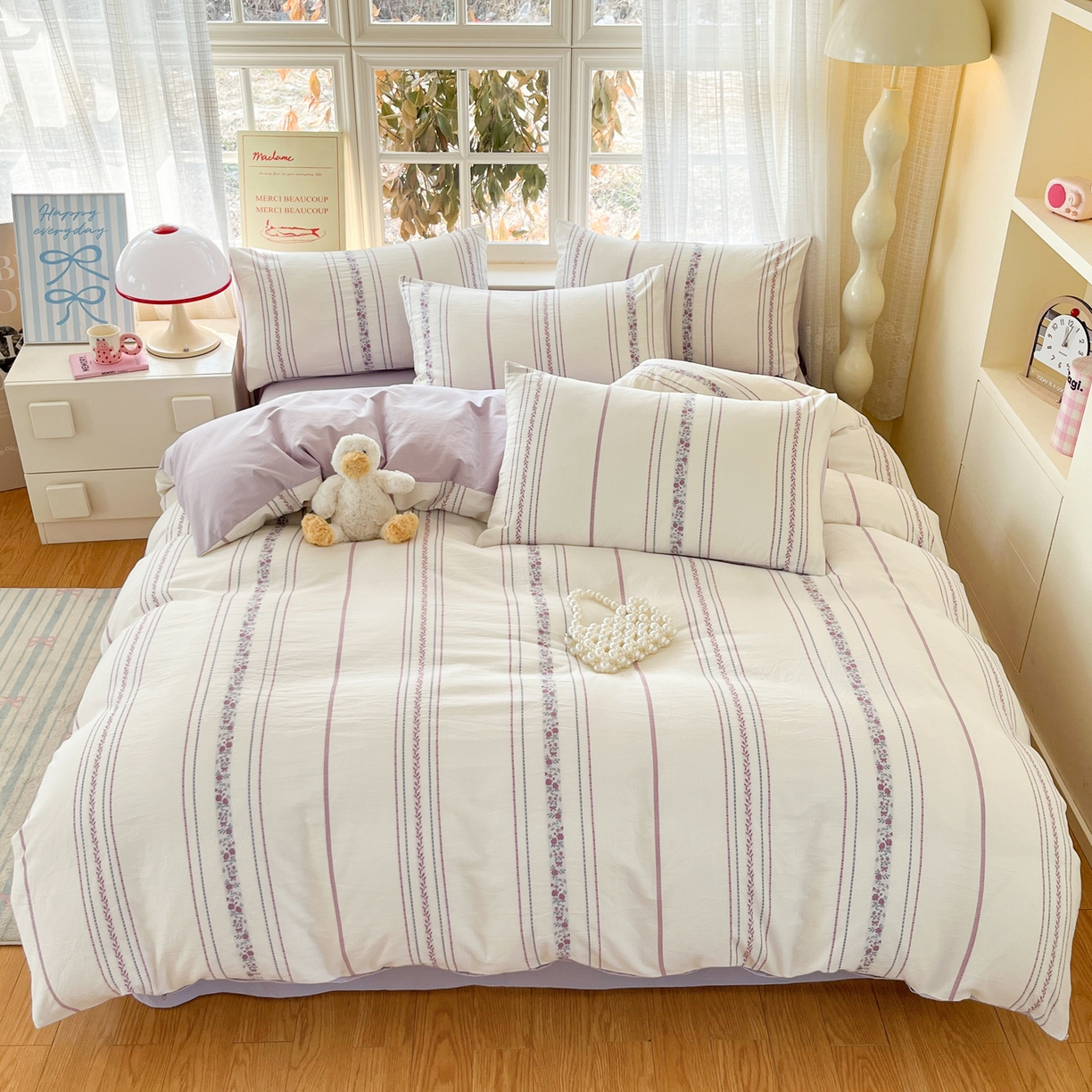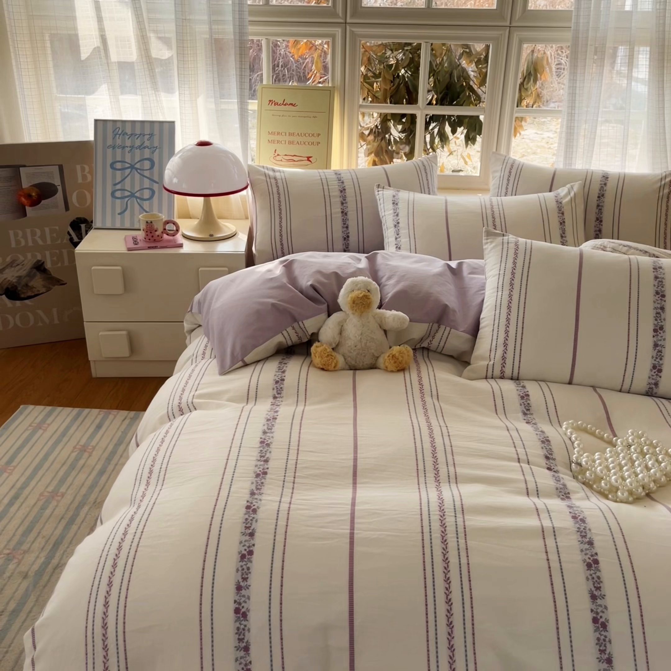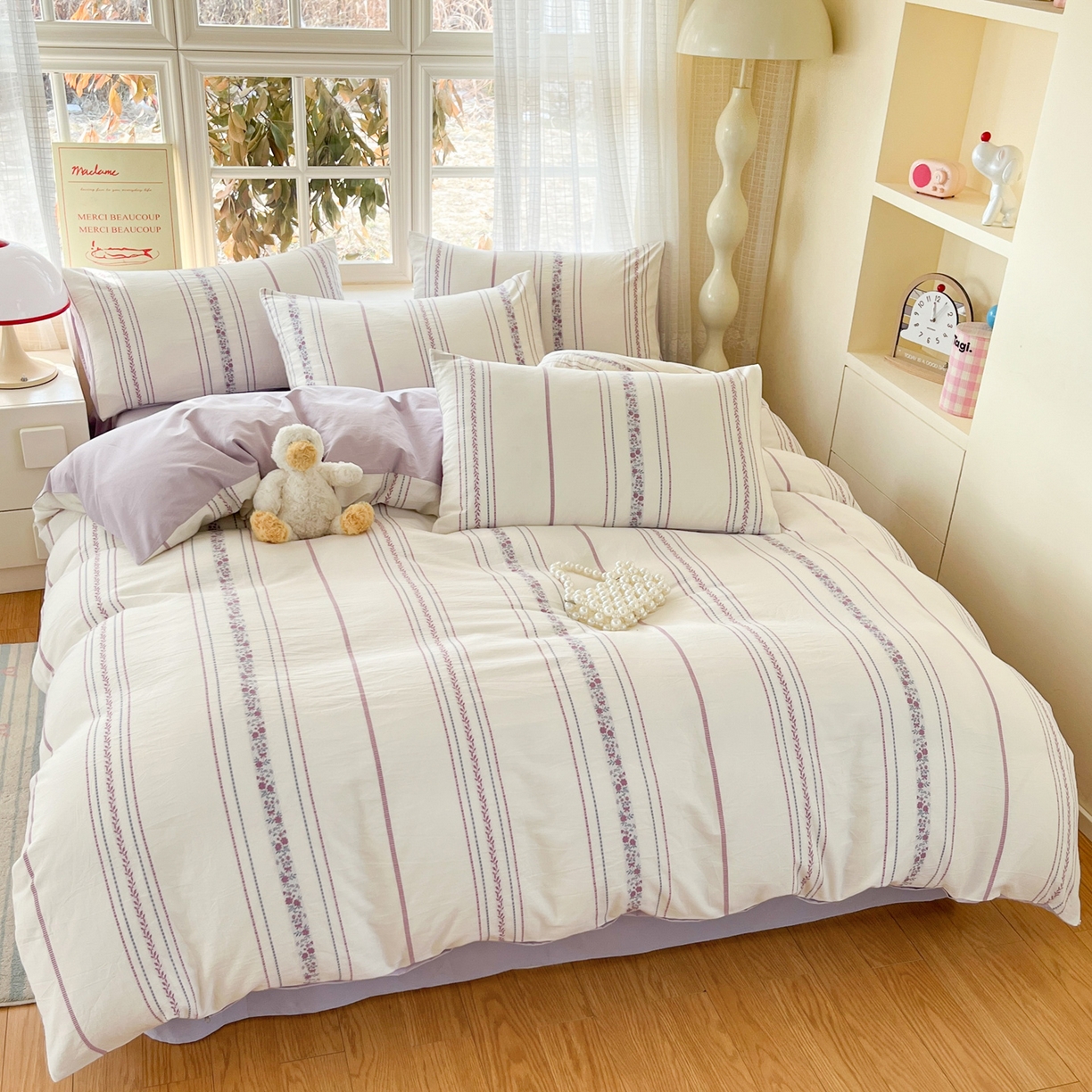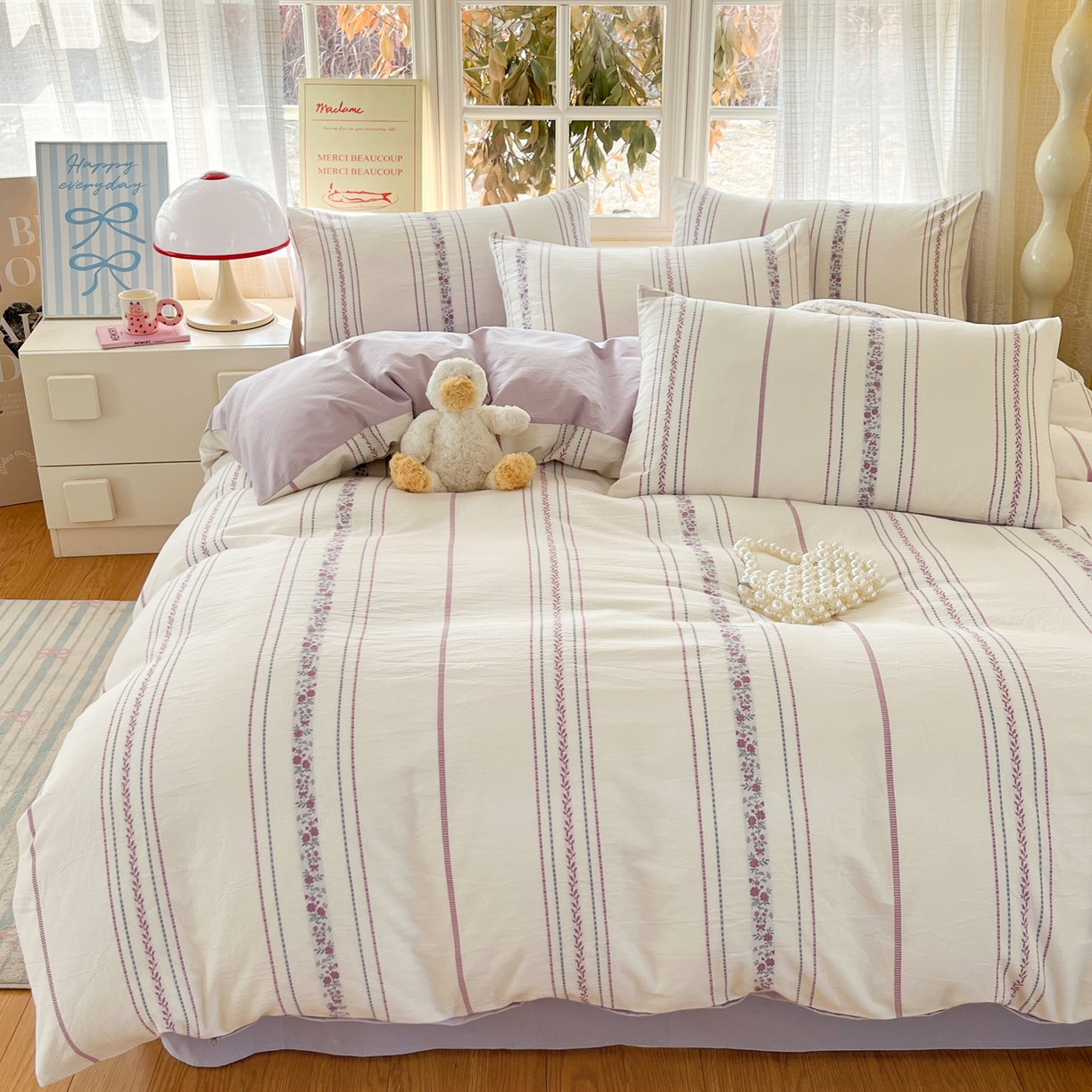 > 莱登卡奴 2026新款全棉纯棉A类水洗棉色织提花剪花系列四件套 纹络花时紫
