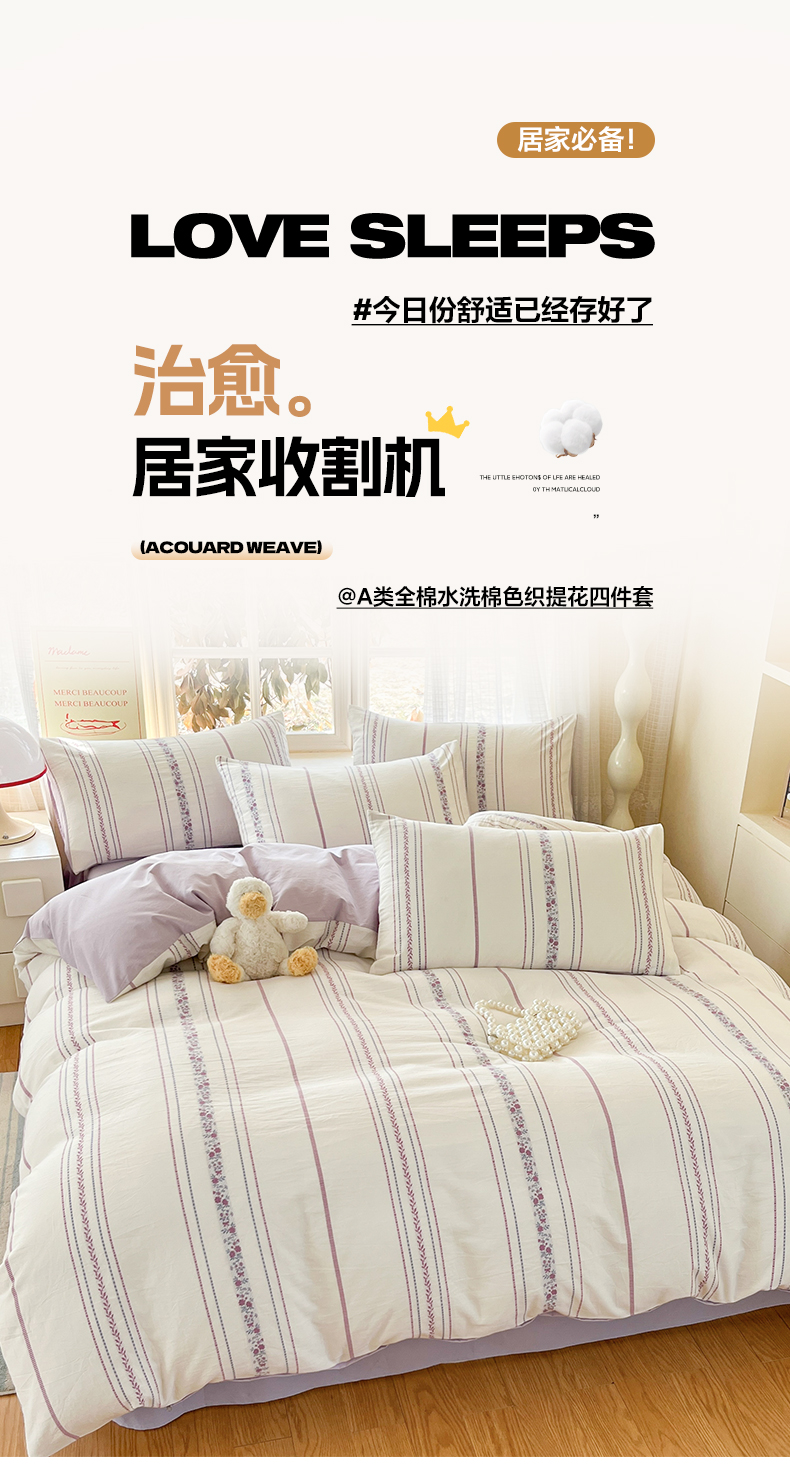 2026新款全棉A类三层纱水洗棉色织提花四件套系列