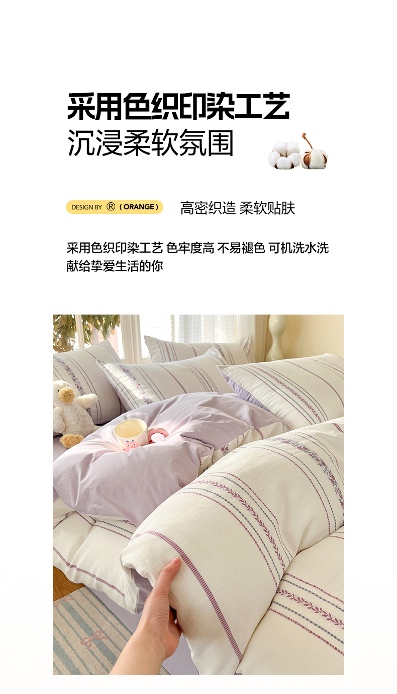 全棉A类色织水洗棉贝壳绣学生宿舍床系列