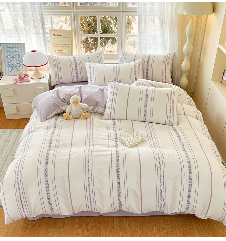 2025新款A类全棉色织水洗棉贝壳绣条纹系列四件套